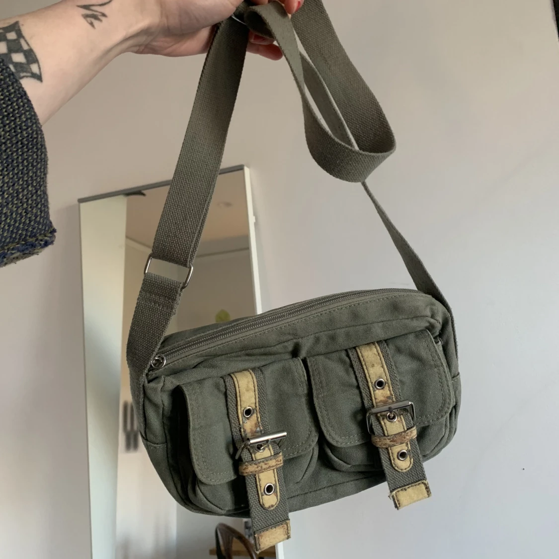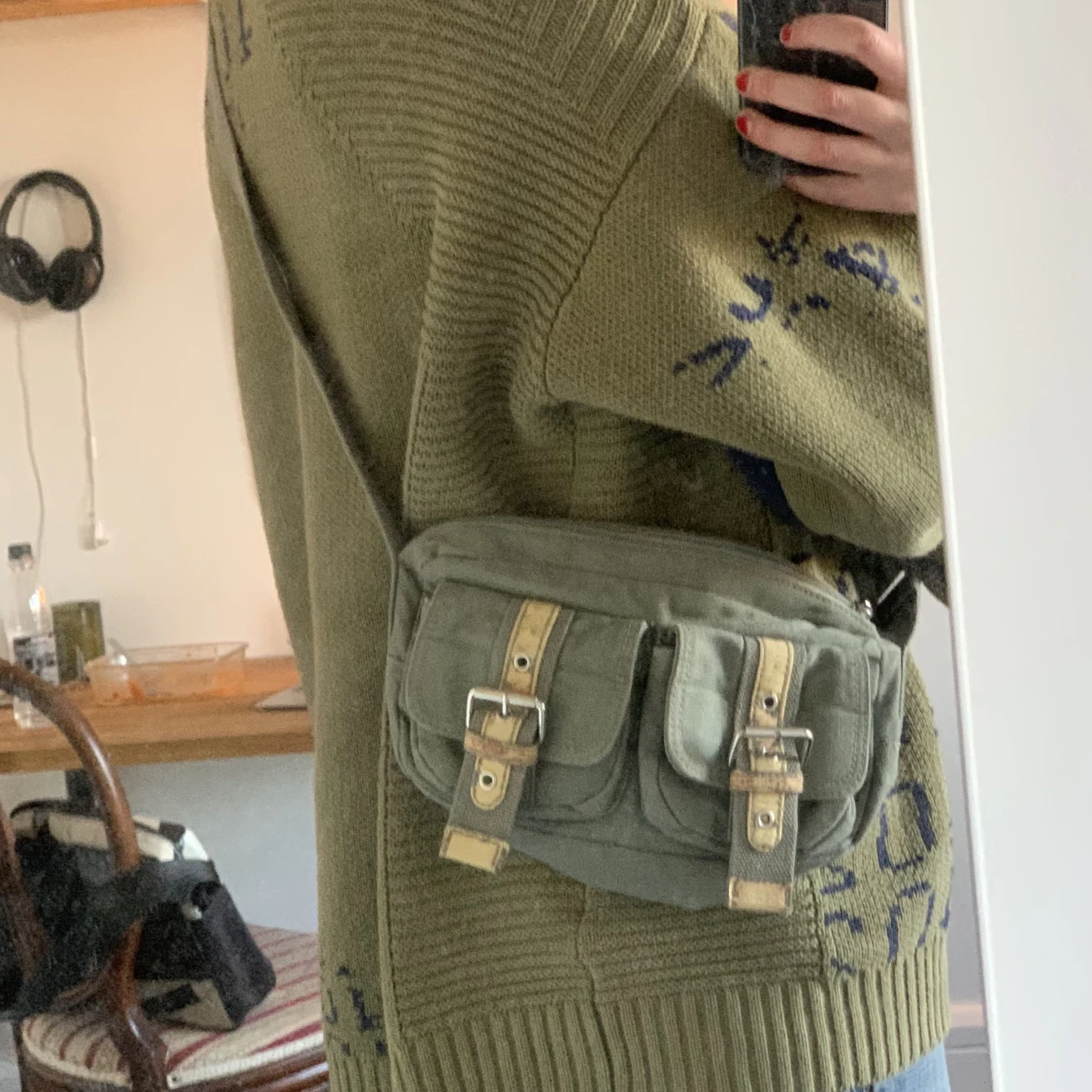 Liten grön väska, kan ha kort eller långt band perfekt för utekvällar, många fickor
