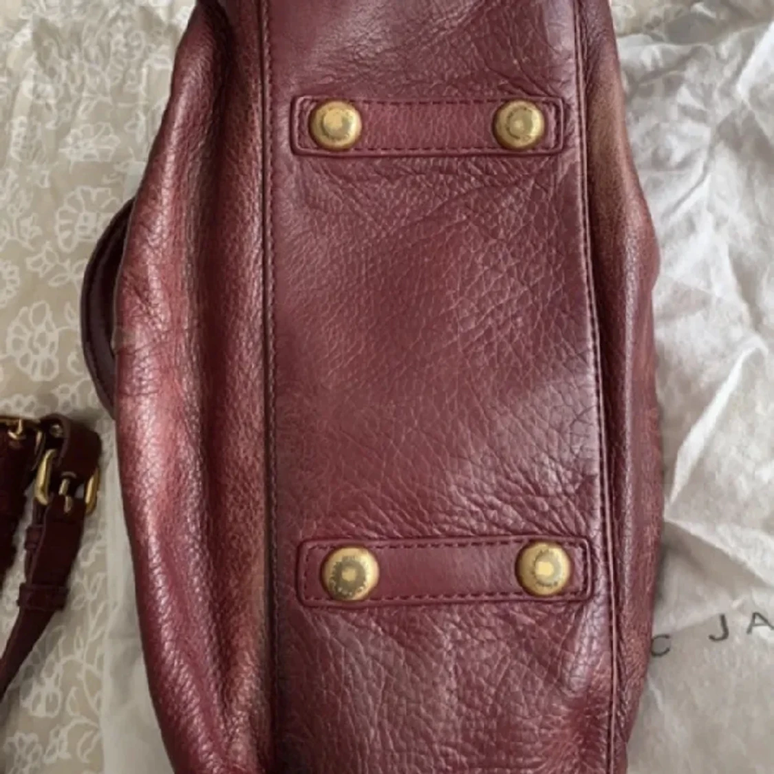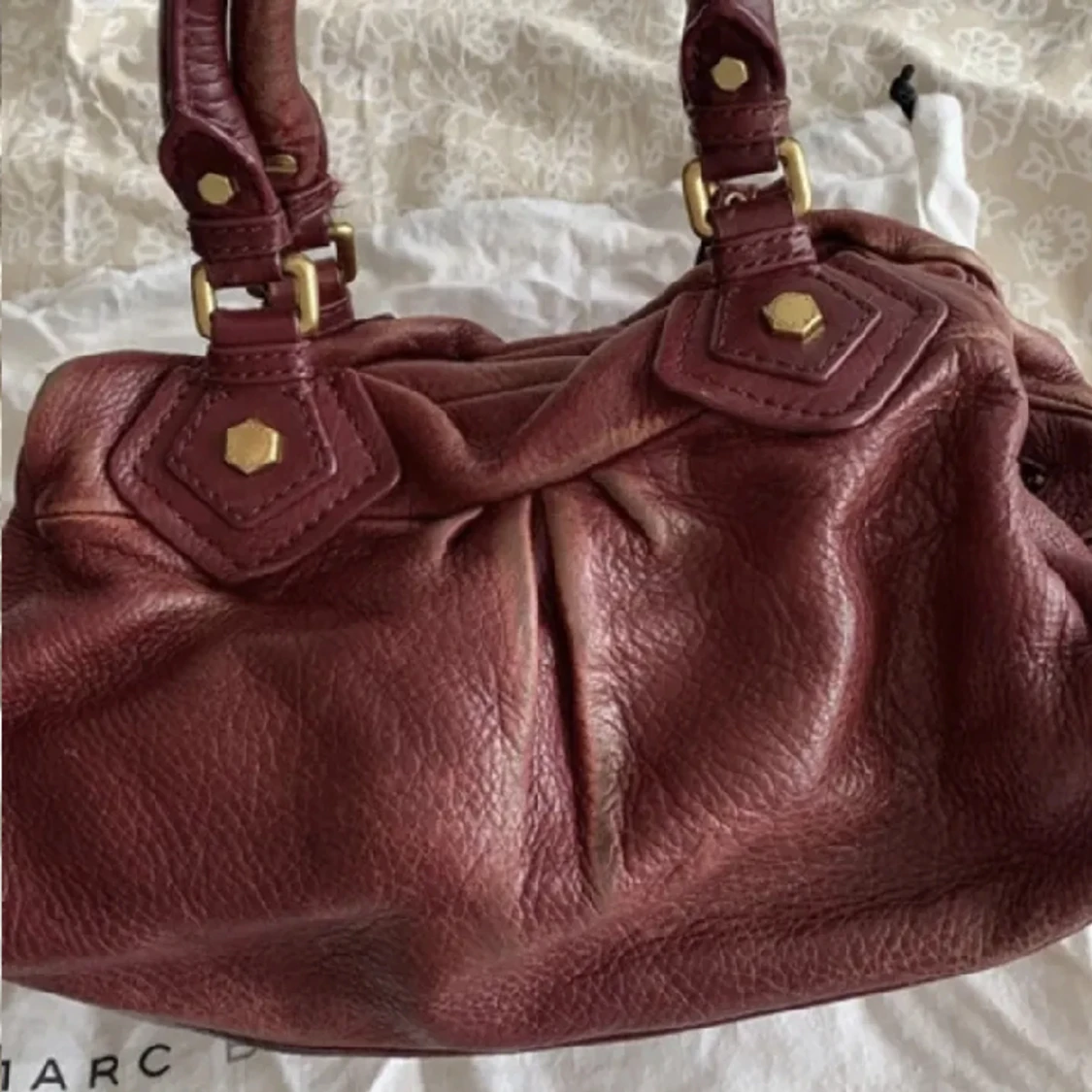 Säljer vintage marc Jacobs väska i mörkare vinröd nypris 5500kr,obs bilderna är lånade!skicket är använt haren del repor,man får avgöra själv på bilderna jag kan skicka❣️lite missfärgningar oxå på vissa ställen,täcken på användning!Inget paxas,tryck på köp