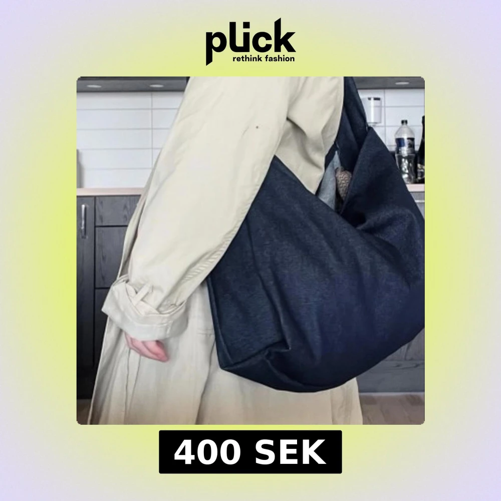 Säljer en stor och rymlig mörkblå axelväska i jeansmaterial. Väskan har en bred axelrem och minimalistisk design, perfekt för att bära med sig allt man behöver till skolan eller stan. Enkel och stilren look som passar till det mesta.