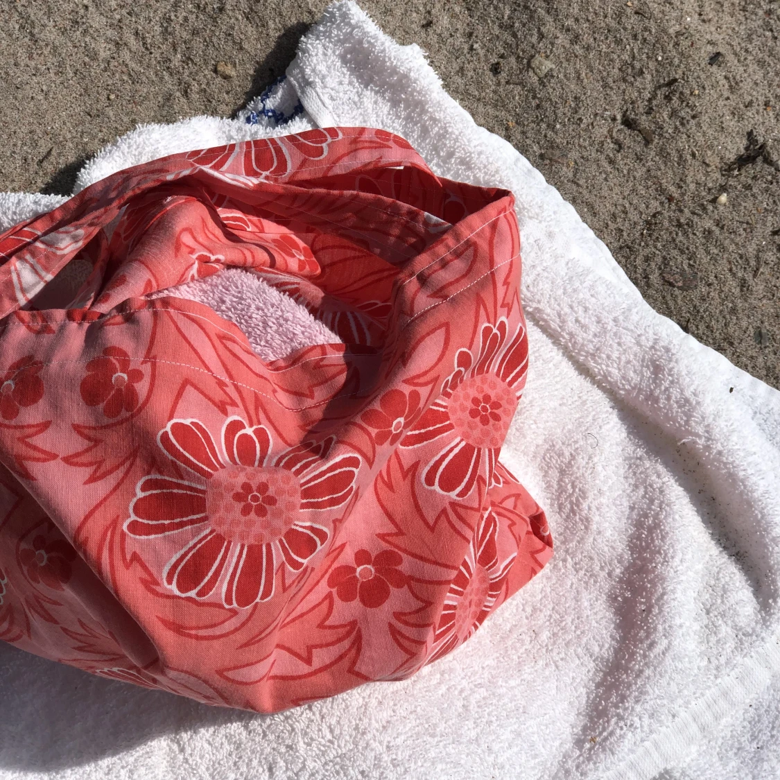 Totebag gjord på återvunna tyger. Perfekt till sommaren. Klassisk model och den mäter ca 35x21 cm. Långa axelband. Svarar gärna på frågor. Tvättas i maskintvätt (max30 grader).