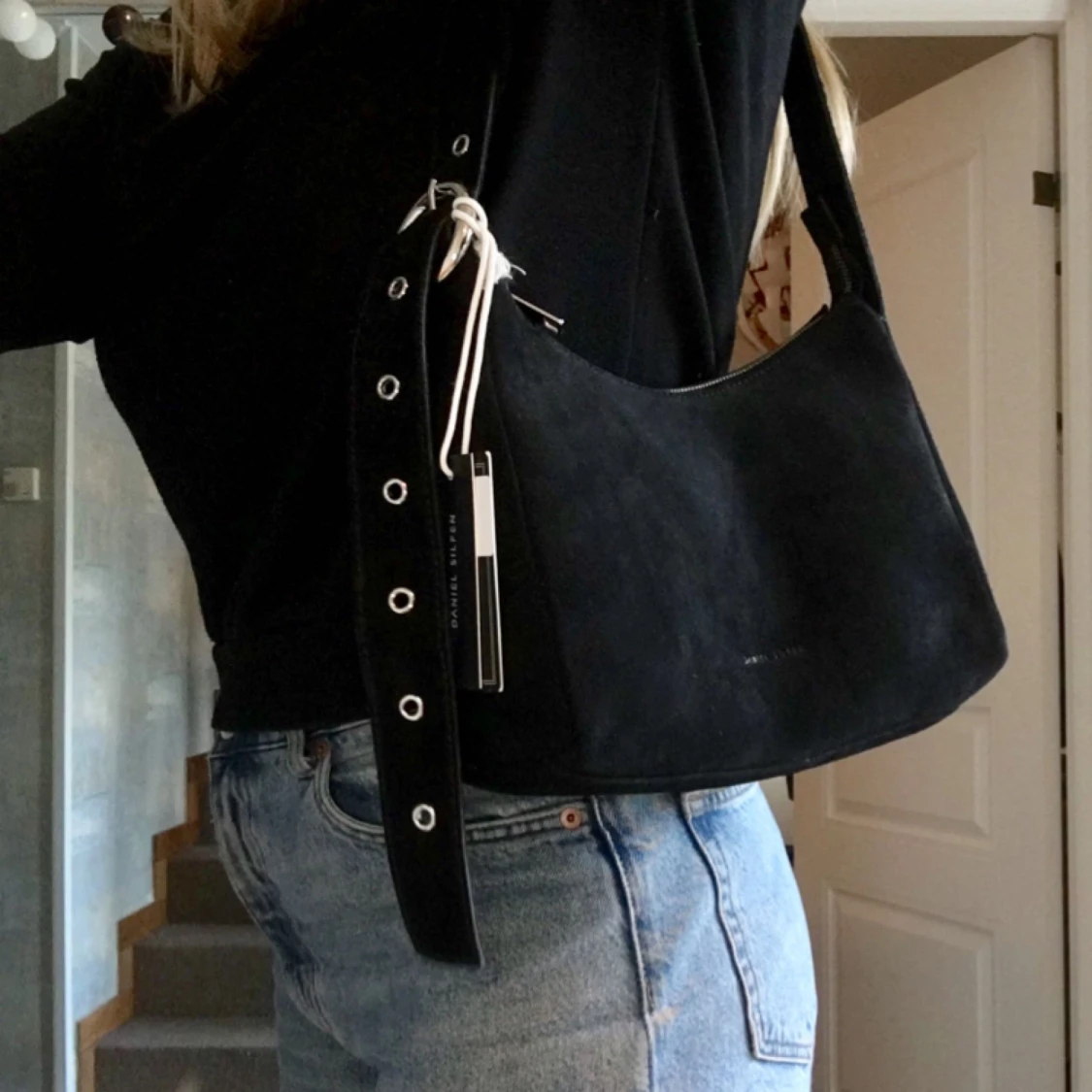 Säljer denna jättesnygga svarta väska i mocka från märket Daniel Silfen. Inköpt på Nelly för 1099kr. Aldrig använd, säljes pga att jag redan har för mycket väskor. Väskbandet kan justeras så att den både kan användas som en crossbody väska eller över axeln.