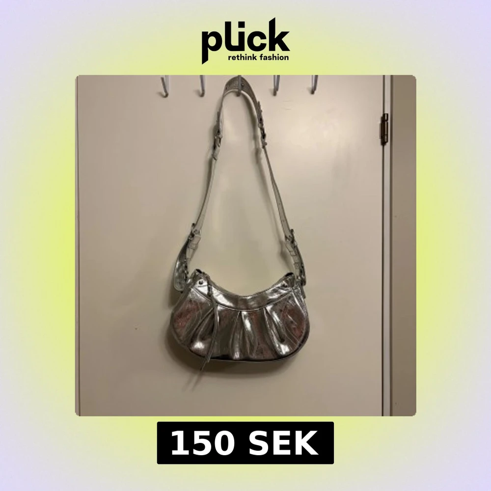Snygg axelväska i metallic silver från Gina Tricot. Väskan har en bred justerbar axelrem med nitar och detaljer, samt veckad framsida. Perfekt för att addera lite extra bling till din outfit.
