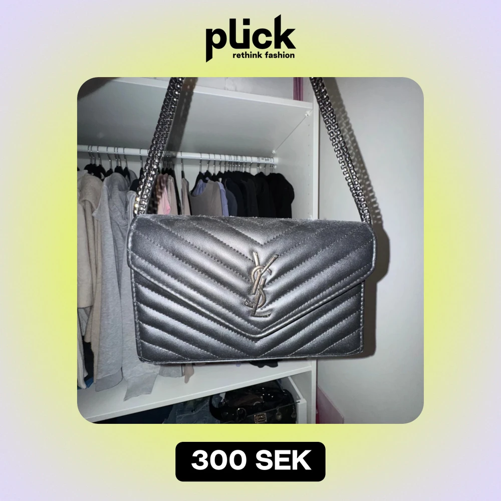 Snygg silverfärgad axelväska (inte äkta YSL )mycket bra skick. Väskan är quiltad med ett elegant mönster och har en kedjerem. Perfekt för både i vardag och fest! Insidan har en praktisk dragkedja för säker förvaring.