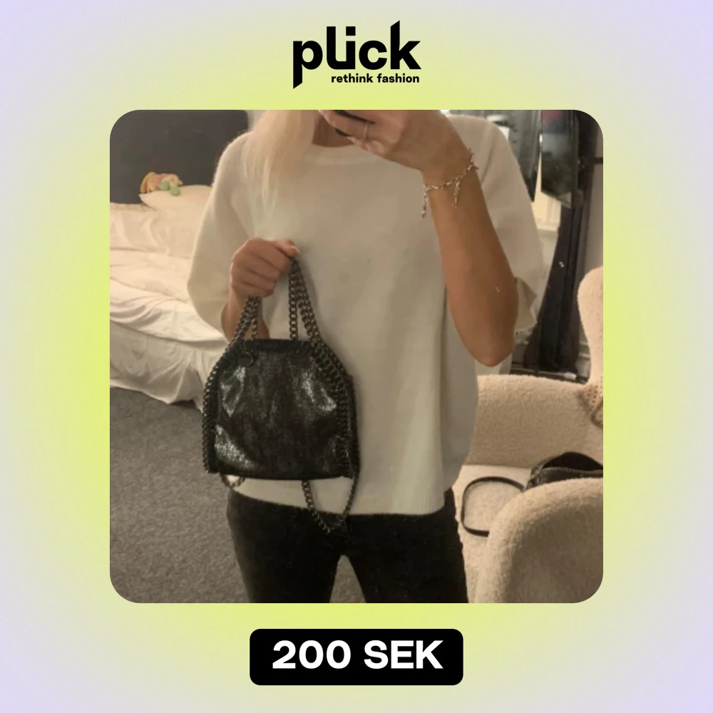 Säljer denna silver väska som likar Stella Maccartney men köpt på Vinted. Inte något märke vad jag vet🩷 tyvärr är knappen sönder för att stänga därav lägre pris än vad jag annars hade tagit (kolla sista bilden)✌️