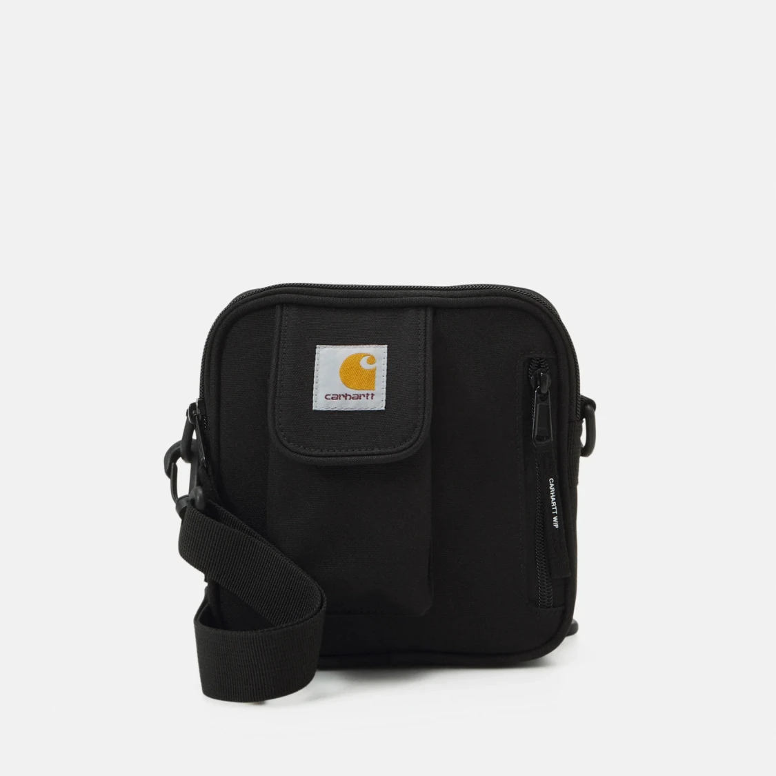 Snygg svart axelväska från Carhartt med justerbar rem, praktisk ficka framtill och dragkedja. Perfekt storlek för mobil, plånbok och nycklar. Klassisk Carhartt-logga på framsidan och robust design i slitstark polyester.