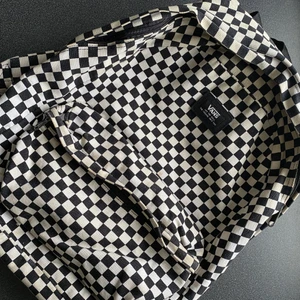 Rutig ryggsäck från Vans. Ett litet fack & ett stort. Justerbara remmar och handtag på topp. Svaga missfärgningar vid axelremmarna och runt öppningen av dragkedja. Annars i fint och helt skick. Spårbar frakt kan ändras till frimärken.