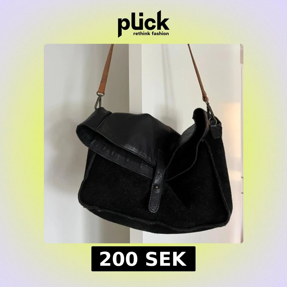Svart väska i äkta läder från Pieces. Väska med axelrem i läder, som även går att ta bort. Väskan har ett lock som stängs med en tryckknapp. Insidan är fodrad och har en ficka med dragkedja och två små fickor. Man får plats med mycket i väskan. Väskan är väl använd, se bilder. 100% koläder. Mått: Höja utan axelrem ca 21 cm Bredd ca 28 cm Djup ca 10 cm