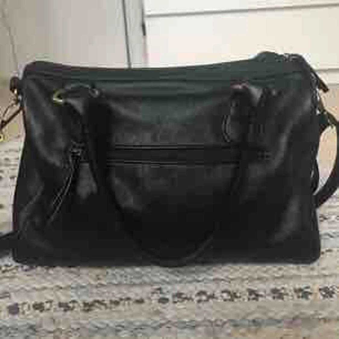 En svart even&odd väska som är knappt använd, original pris 350kr.Skinn imiterat material, två korta handtag och ett reglerbart långt band. Väskan har två små fack med dragkedja och två mindre öppna.