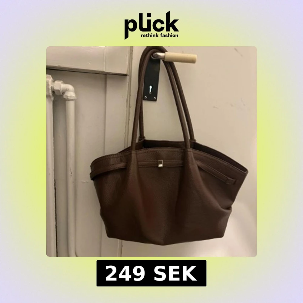 Stilren brun handväska i mjukt skinn med långa handtag, perfekt för att bära allt du behöver. Väskan har en enkel design med en liten metall-detalj framtill och rymligt huvudfack. pris går att diskuteras vid snabb affär!!