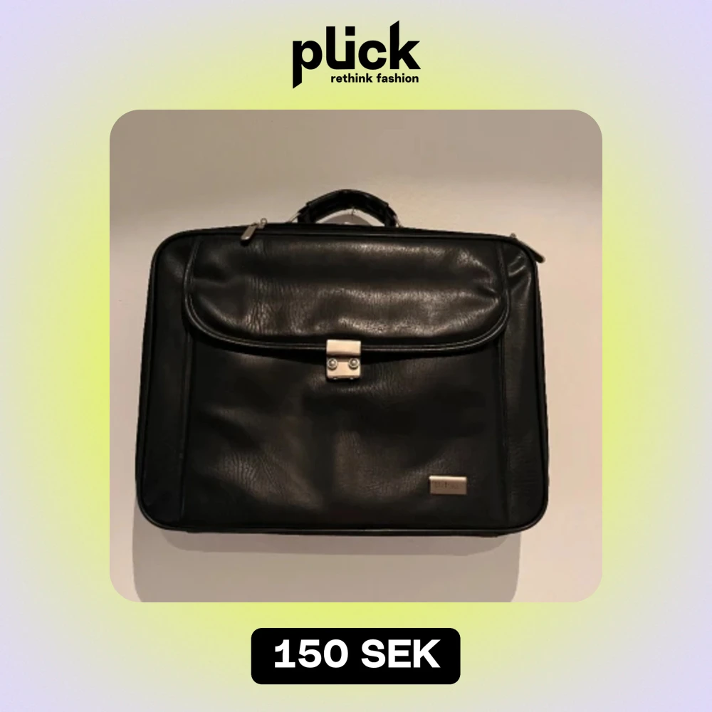En svart portfölj/dataväska där allt får plats med smidiga fack. Svart i läder, har även ett axelband