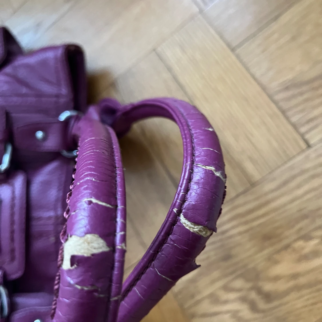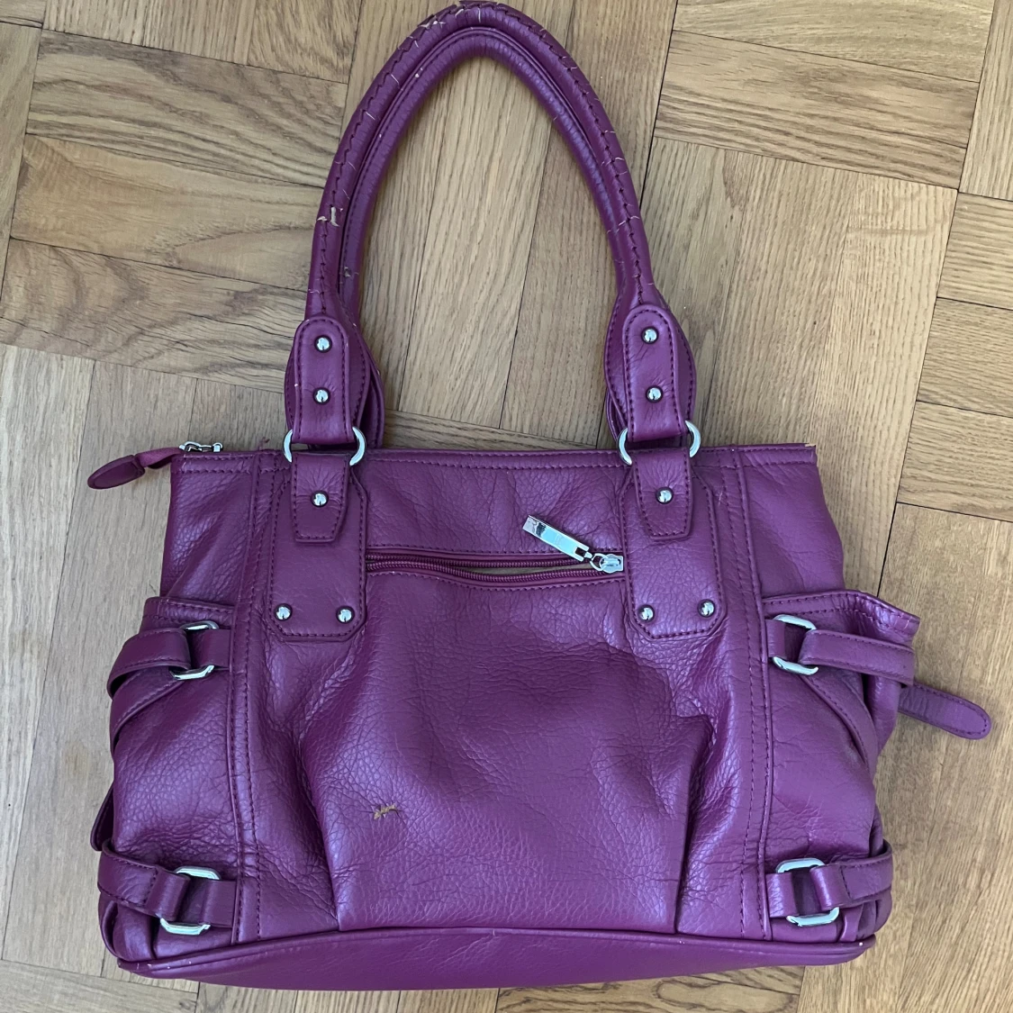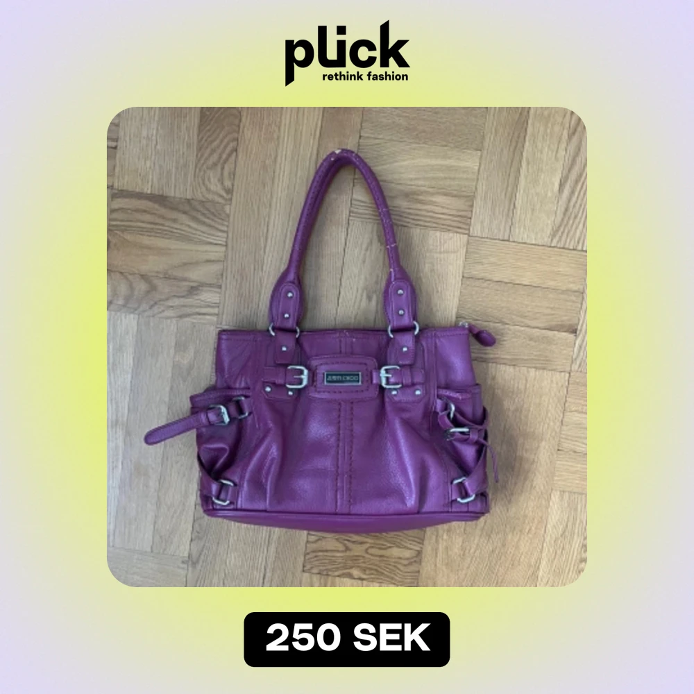 Så snygg lila/burgundy väska från Jimmy Choo (vet ej om den är äkta, köpt på loppis). Finns jättemånga bra fack, men slitage finns både på remmarna och något på baksidan av väskan, se de sista bilderna 💗