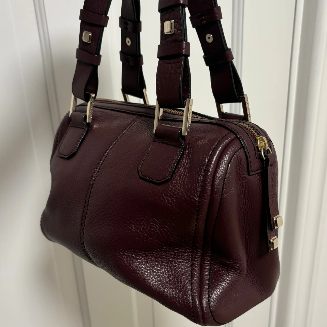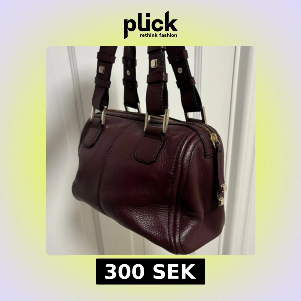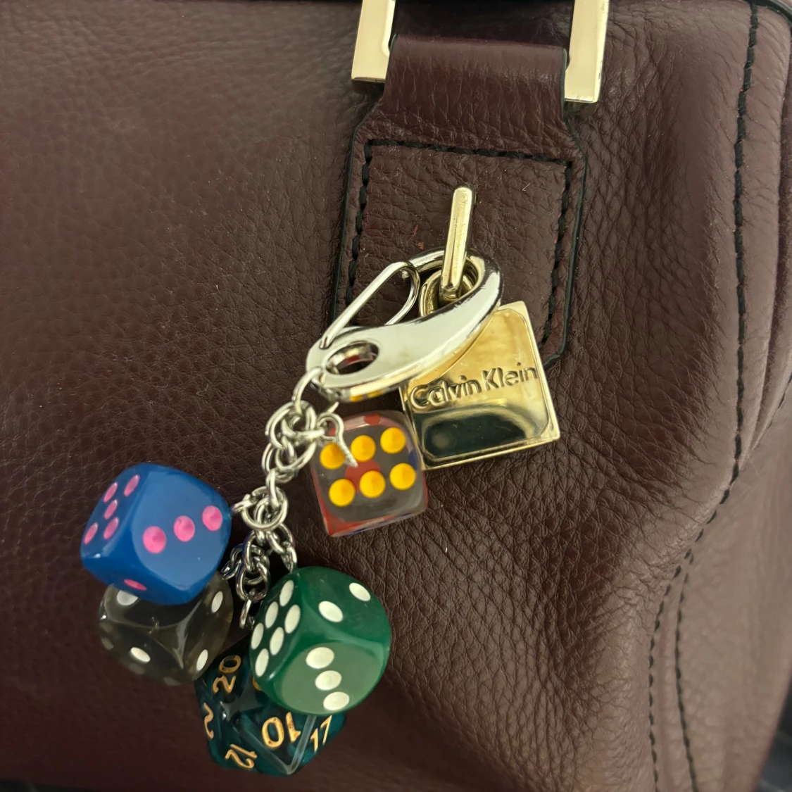 Snygg vinröd handväska från Calvin Klein i äkta skinn med grov struktur. Väskan har guldfärgade detaljer, dubbla handtag med coola spännen och en dragkedja upptill. Utsmyckad med en unik tärningscharm som ger extra personlighet.