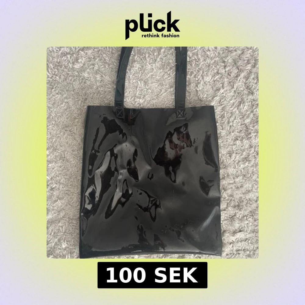 Snygg svart glansig väska från Monki. Perfekt för att bära med sig allt man behöver. Väskan har två handtag och en enkel design som passar till många olika stilar.