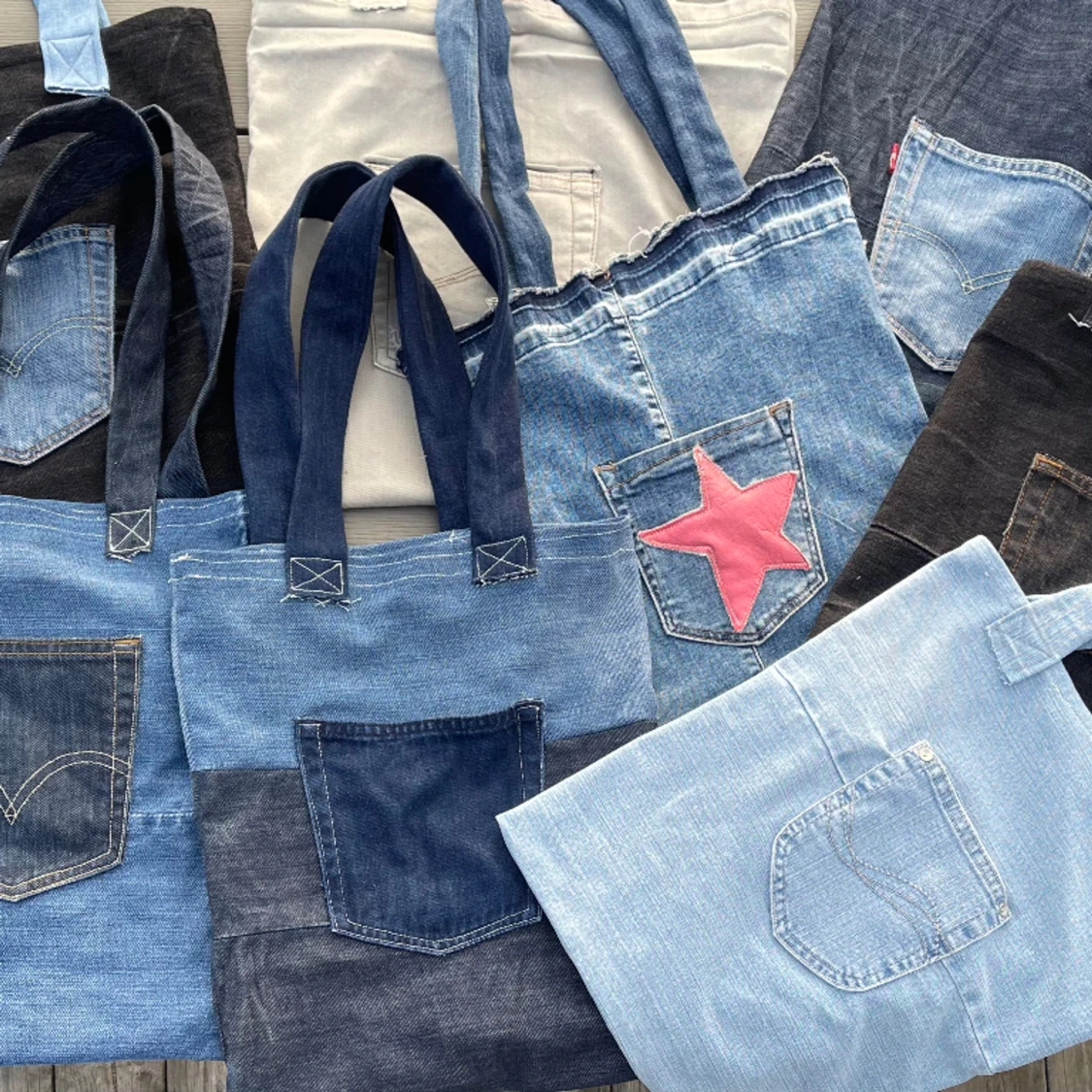 Jag och min kompis syr väskor av gammla jeans som man kan ha som skolväska eller annat! Skriv om ni vill köpa en så kan jag sy efter era preferenser💙🦋🩵