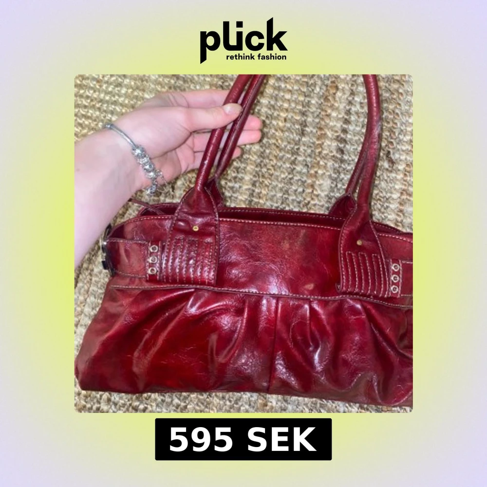 Röd skinnhandväska med detaljer