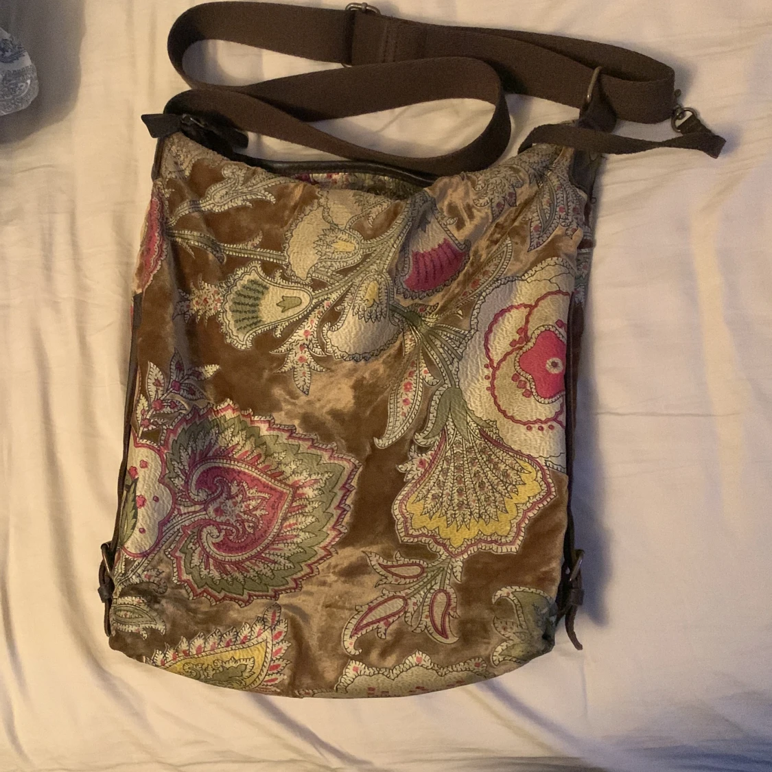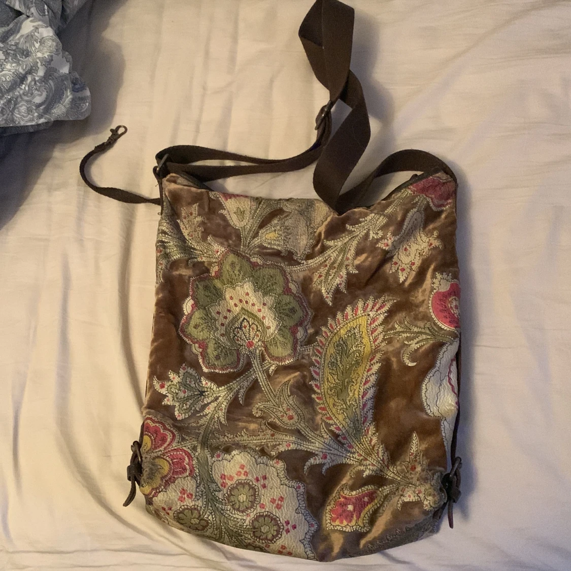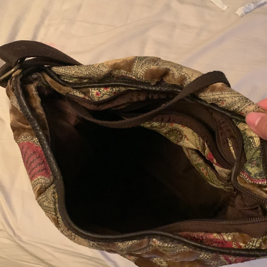 Jätte söt väska med fint mönster. Knappt använd. Har ett snöre inuti väskan som man kopplar t.ex nycklar så man kan enkelt dra upp dem!