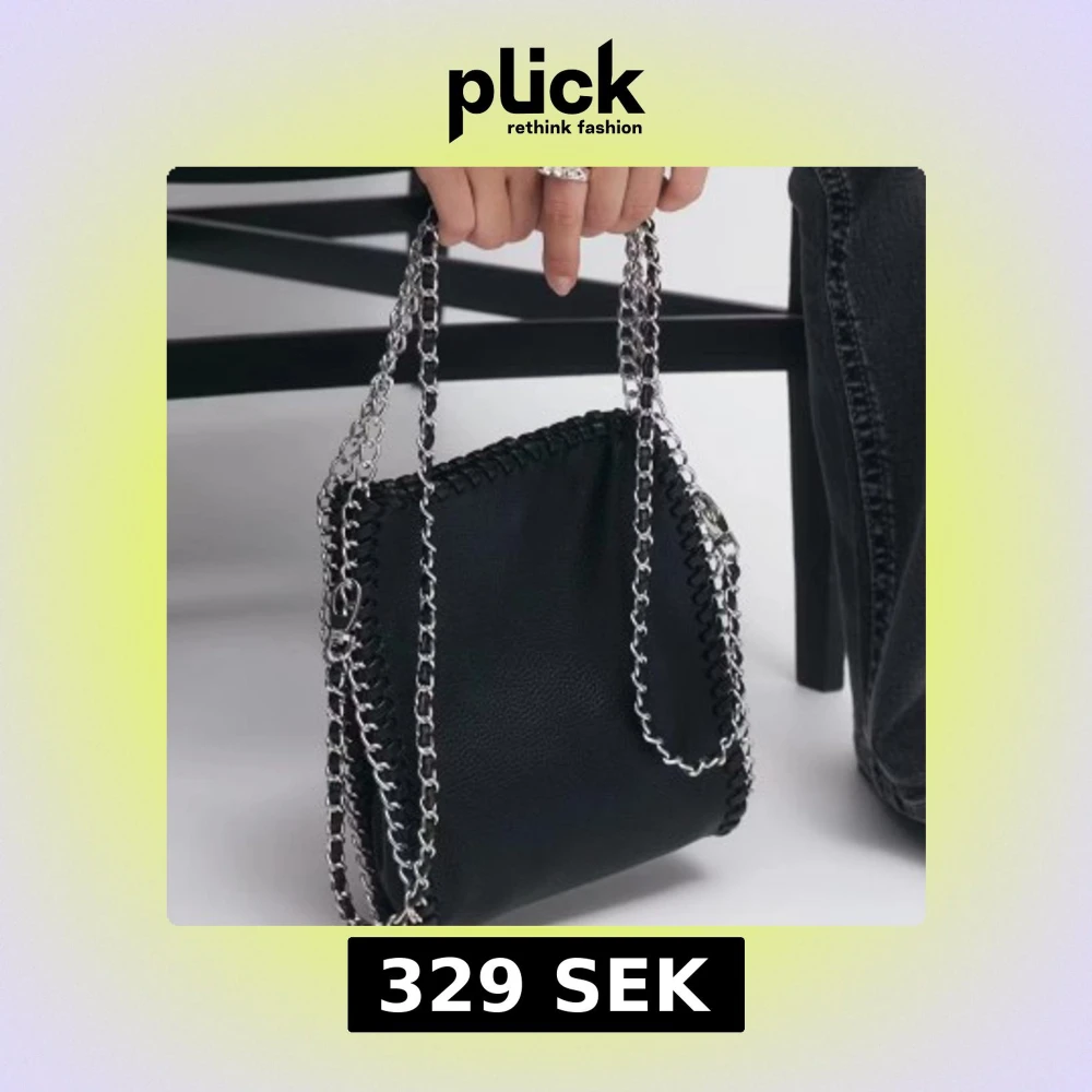 Snygg svart axelväska i skinnimitation med grova silverfärgade kedjor som axelremmar. Väskan har dekorativa sömmar längs kanterna och en stilren, fyrkantig form. Från Gina som är helt slutsåld och den är i bra skick, använd några få gånger!