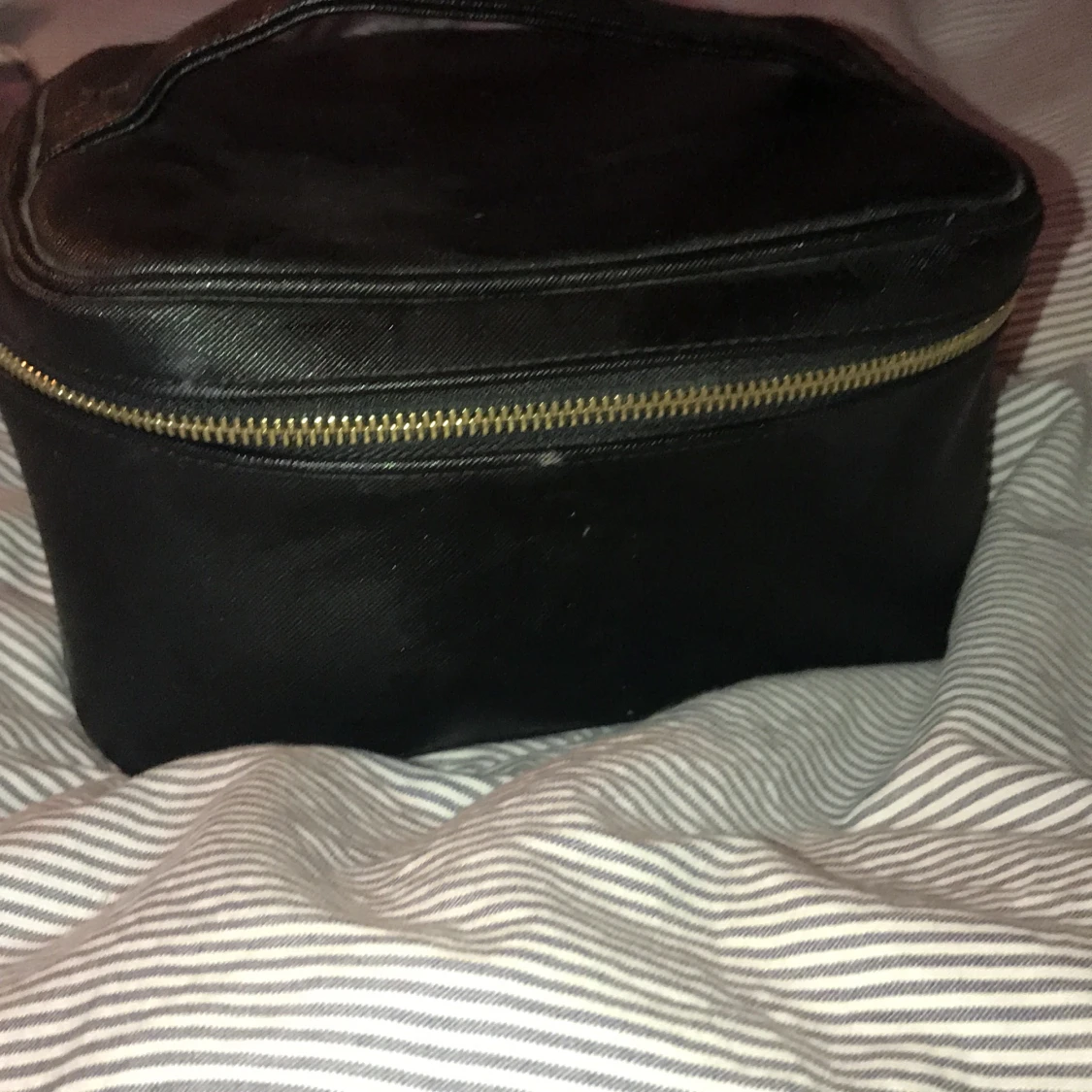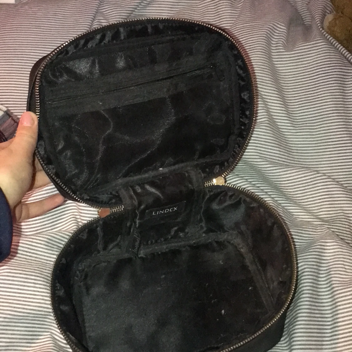 En sminkväska från Lindex, ganska stor så man får plats med mycket, ett fack med nät och dragkedja i locket. Några få foundationfläckar men inget som syns särskilt tydligt. Köparen står för frakten, betalning via Swish.