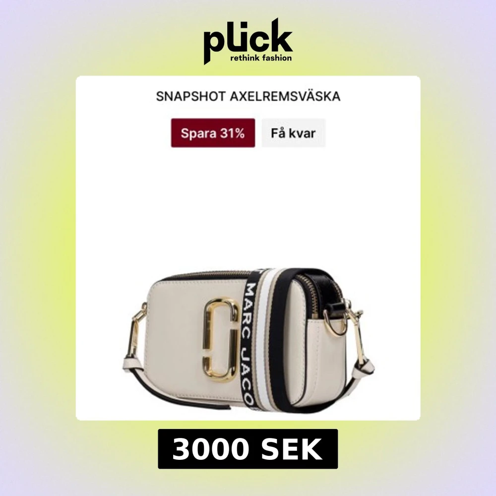 Säljer en snygg Snapshot axelväska från Marc Jacobs i vit och svart med guldfärgade detaljer. Väskan har en bred, randig axelrem med logotyp och dragkedja upptill. Perfekt storlek för mobilen och det viktigaste, med cool design och lyxig känsla. Använd max 10 gånger och väskan är äkta. Priset börjar på 3000kr så skriv till mig ett förslag pris