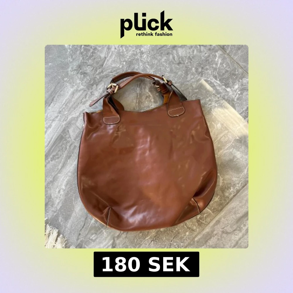 Snygg brun axelväska i skinn med justerbara handtag och guldfärgade spännen. Väskan har en rundad form och är rymlig med ett öppet fack. Insidan är mjuk och mockaliknande, perfekt för dig som gillar stilrena och klassiska accessoarer.