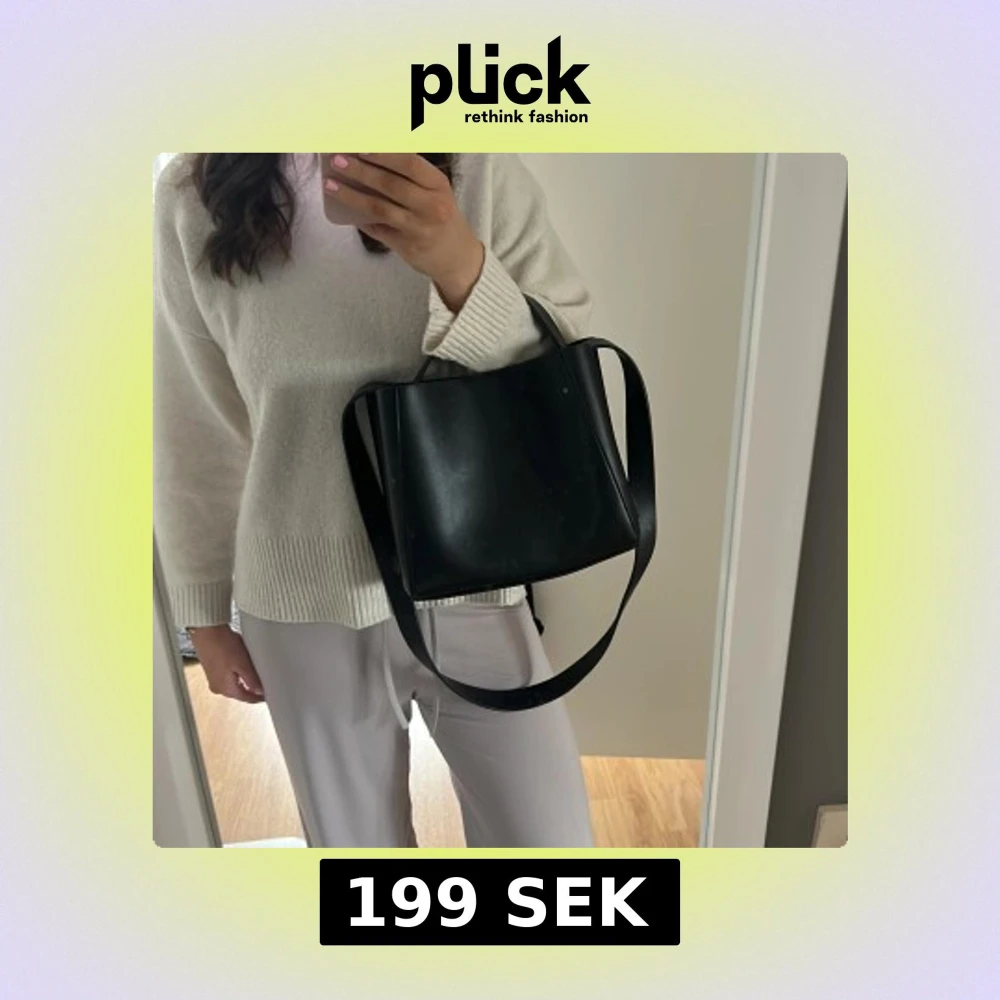 Snygg svart axelväska i skinn med minimalistisk design. Det långa bandet går att ta av och sätta på. ❣️❣️