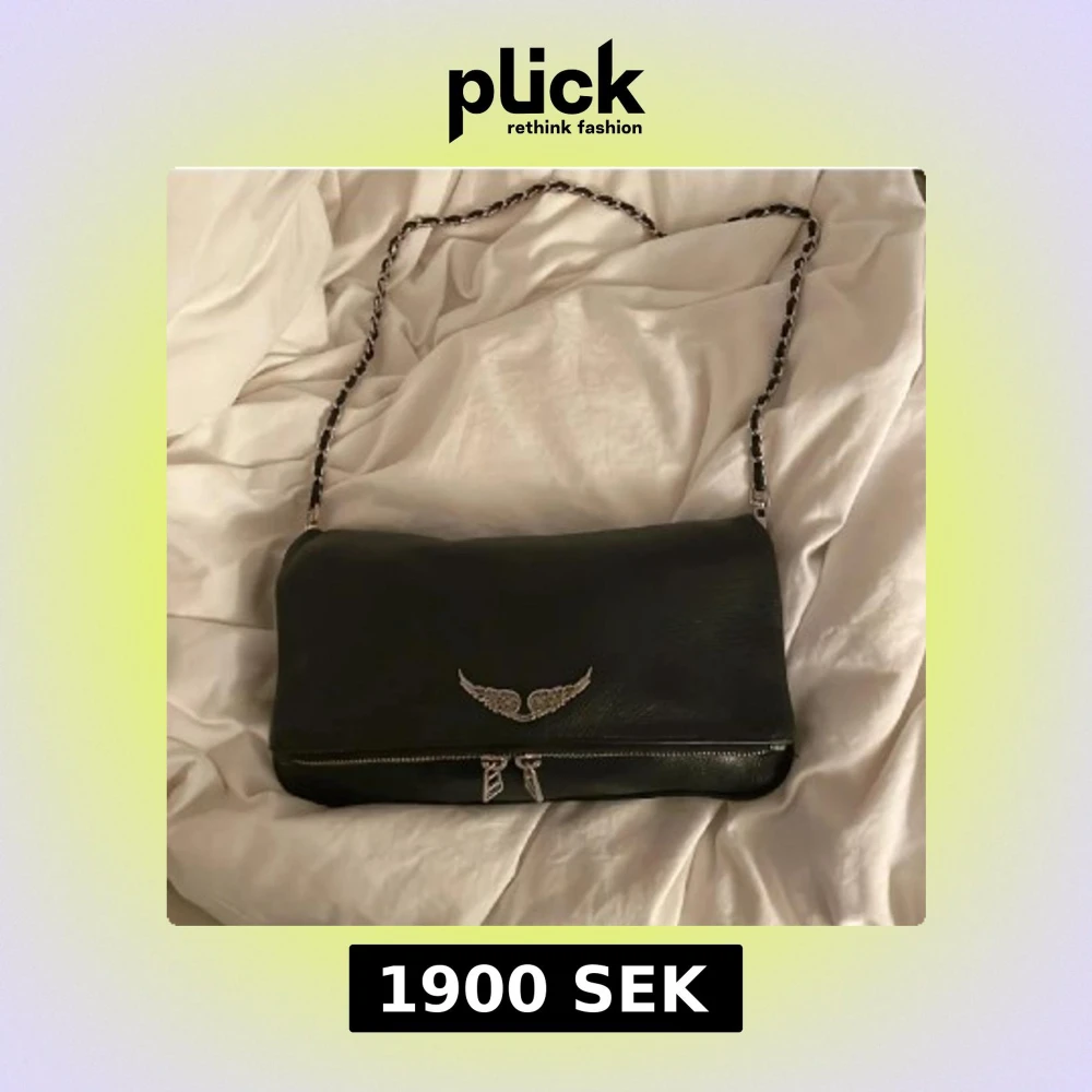 Snygg svart axelväska i skinn från Zadig & Voltaire med silverfärgad kedjerem som tyvärr inte kommer till användning💓