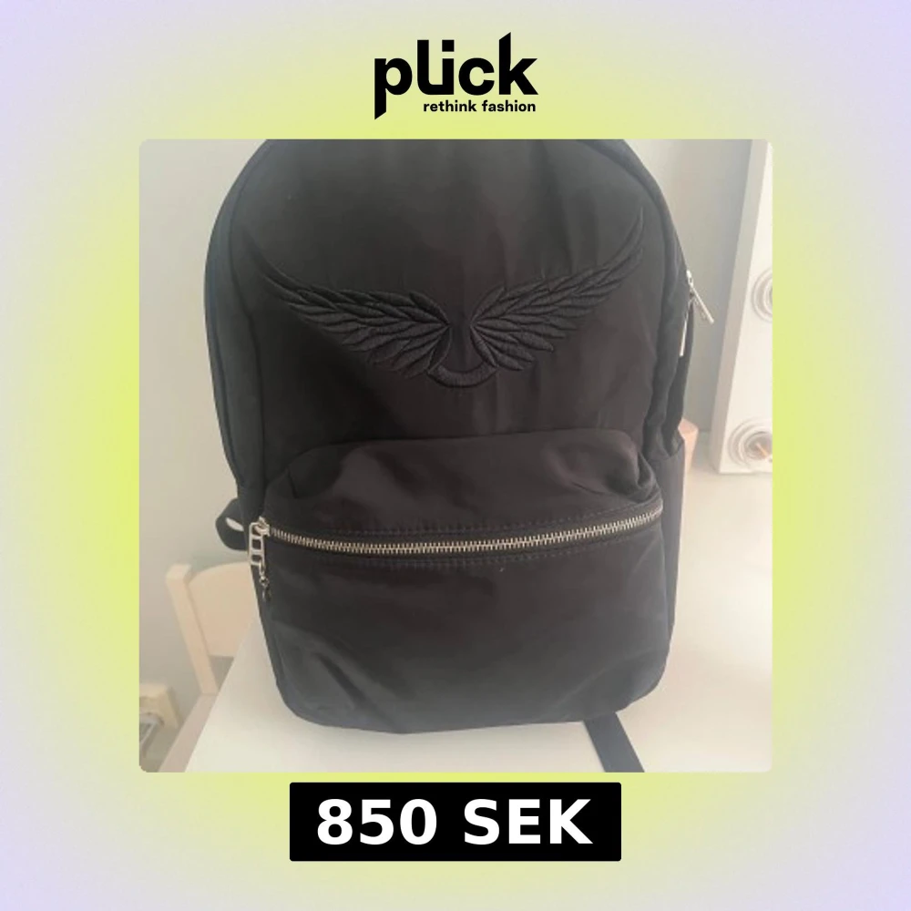 Cool svart ryggsäck från Zadig & voltarie med broderade vingar på framsidan och logga på axelremmarna. Rymligt huvudfack, framficka med drag och innerficka med etikett❤️ Ryggsäcken är rymlig så perfekt för skolan💖Ny pris 1700😇Pris går att diskutera💓