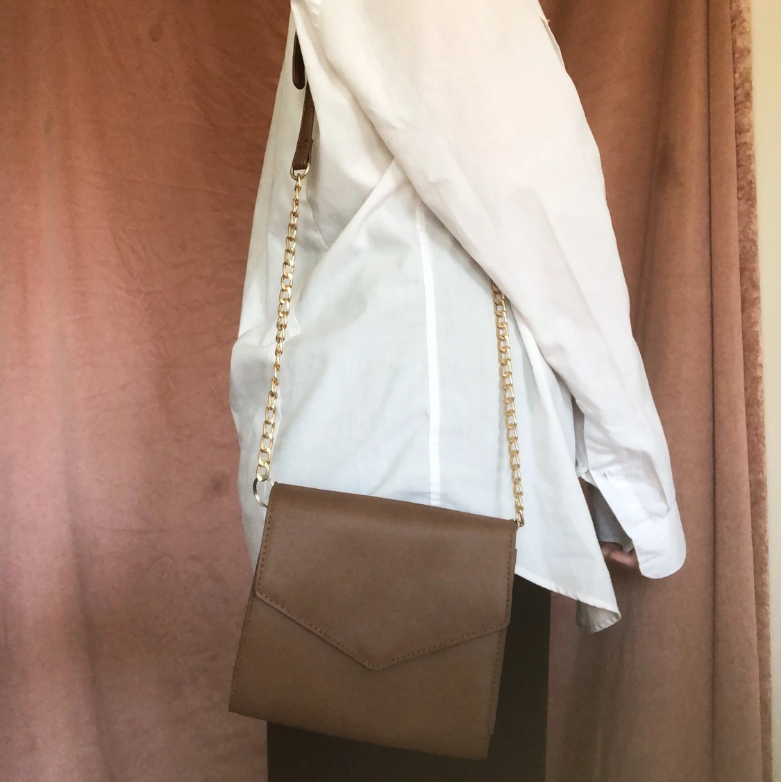 Brun väska med guldig kedja som detalj, knappt använd! Köpare står för frakt 🤎