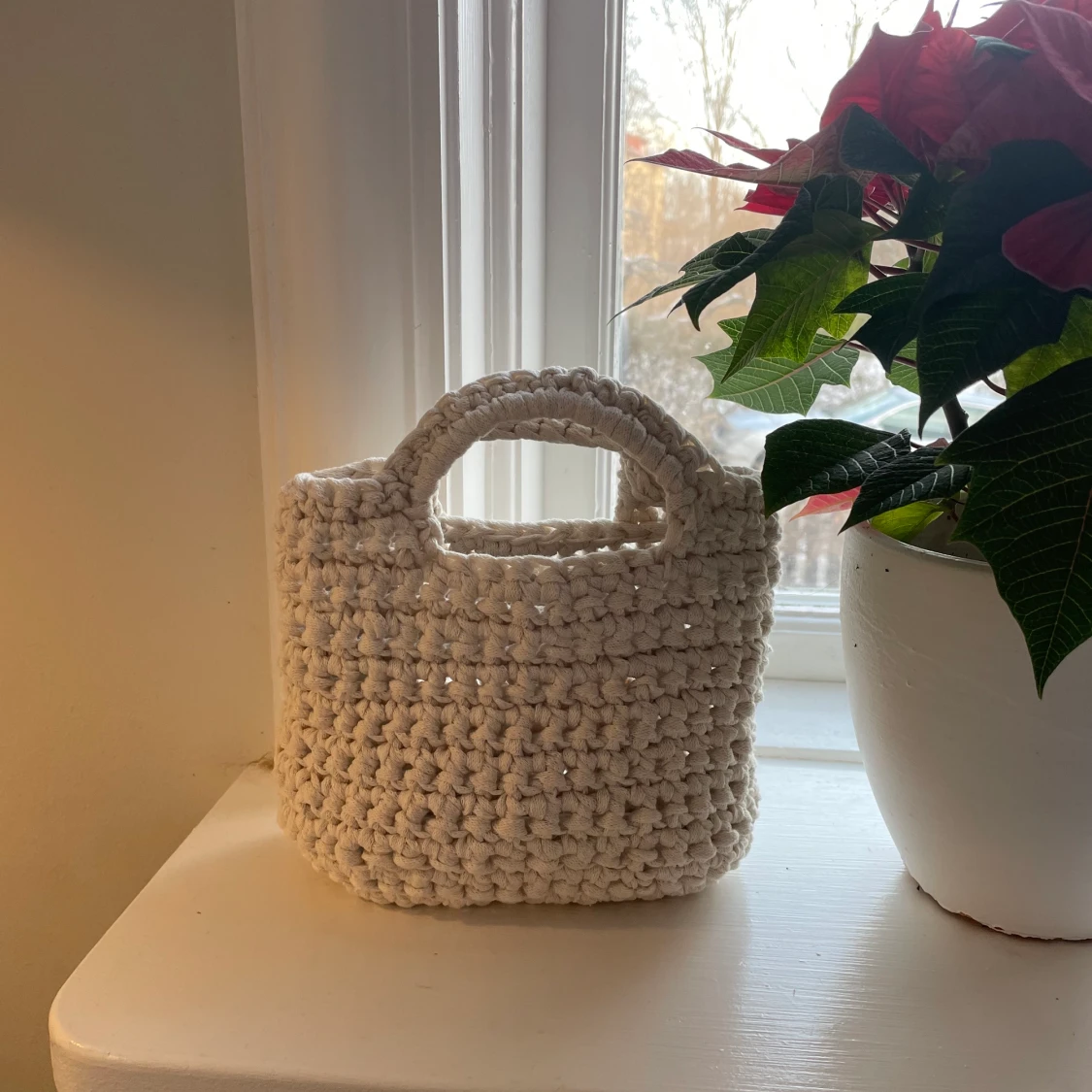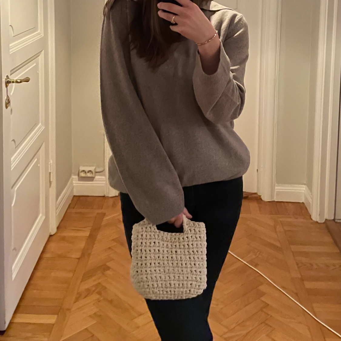 Säljer denna hemmavirkade väska! Väldigt söt och perfekt i storlek. Kommer bli jätte fin i sommar till en fin sommarklänning