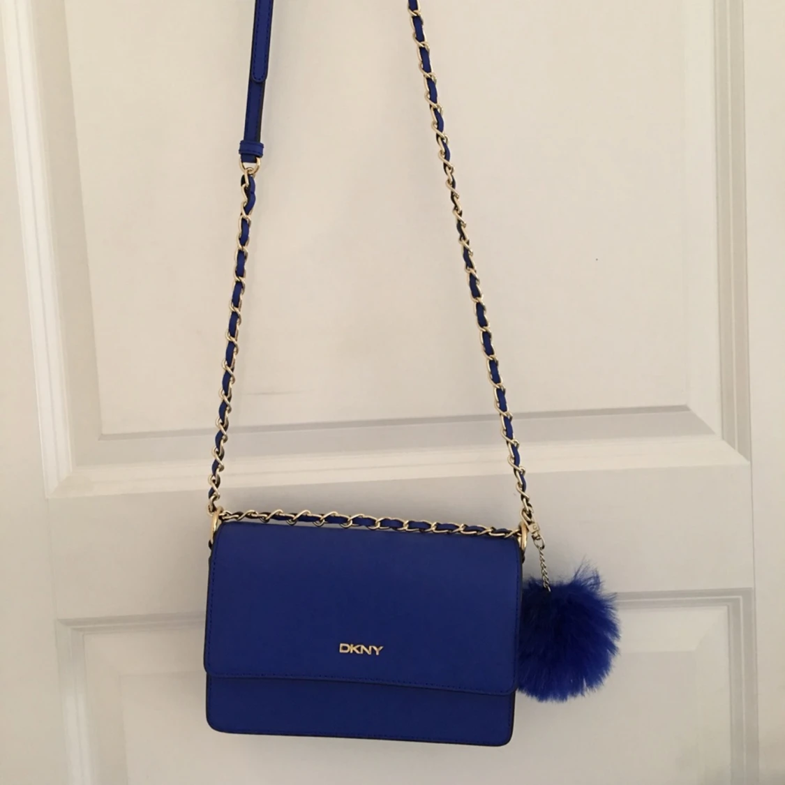 Äkta DKNY väska. Aldrig använd, längden på banden kan justeras som man vill och bollen kan tas bort om man vill.