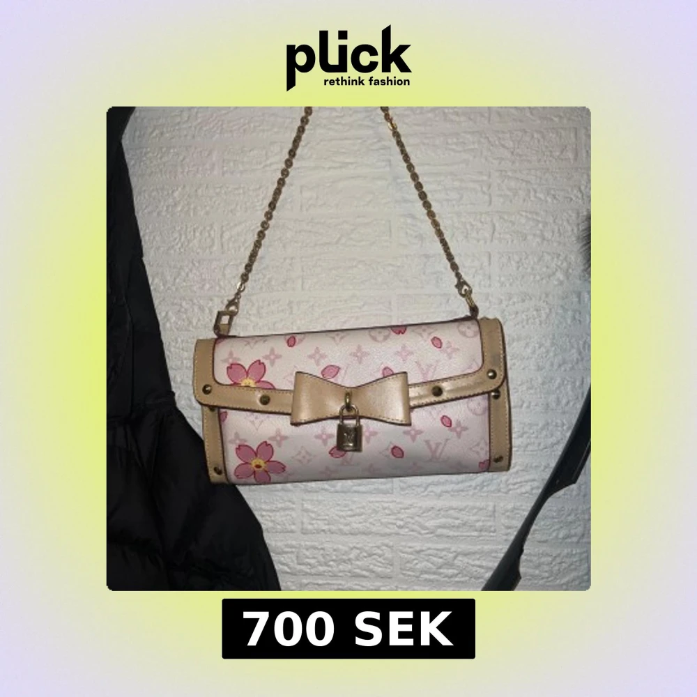 Säljer en söt axelväska med blommigt mönster i rosa och beige. Väskan har en dekorativ rosett och ett lås framtill. Den har en kedjerem i guld som ger en elegant touch. Kedjan har jag själv satt på.