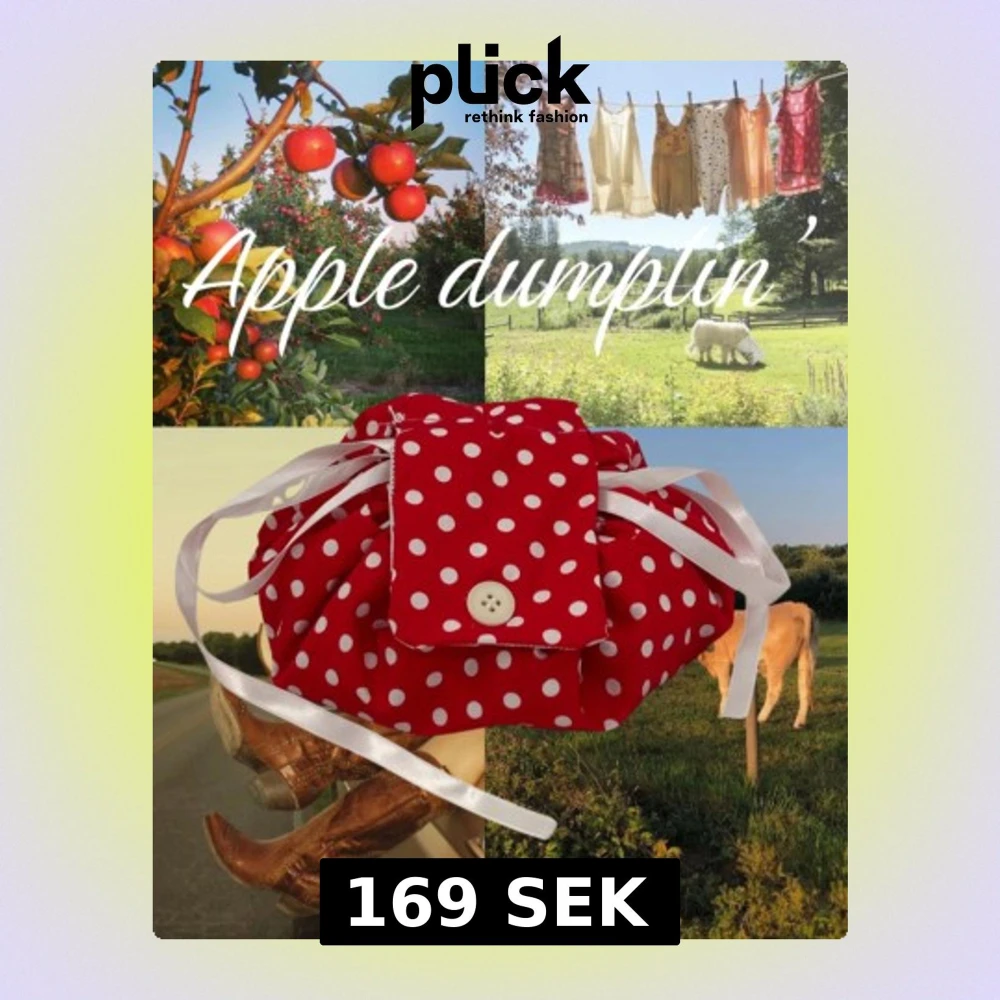 Supersöt röd sminkväska med vita prickar och snörning i vitt band. Väskan har en rund form och stängs med en knapp framtill. Perfekt för att förvara smink eller småprylar. Insidan är också prickig och väskan är gjord i mjuk bomull.