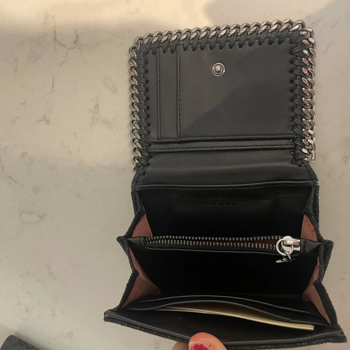 Fin plånbok från Stella Mcartney i svart. Väldigt bra skick förutom en fläck på baksidan, se sista bilden!