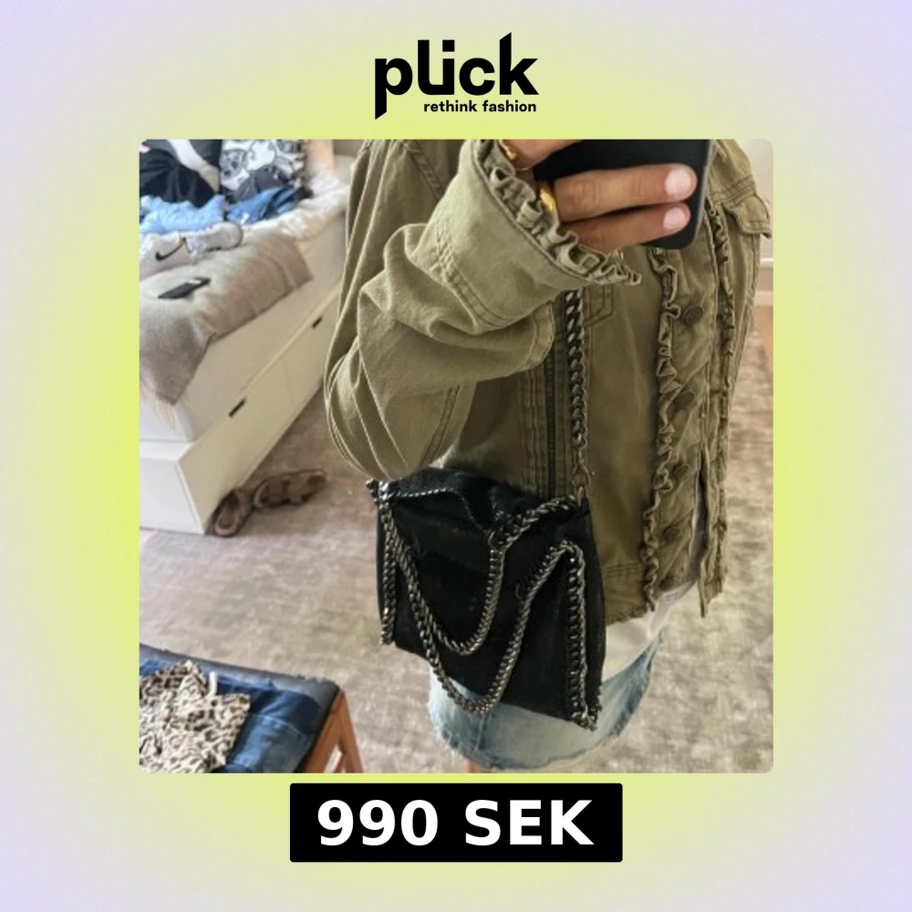 Handväska i läder med silverkedjor som liknar Stella McCartney väska. Köpt på en Second Hand i London. Läder från Italien (se etikett). Sjukt cool och passar jättebra till alla outfits och speciellt till skolstarten. Har långt och kort handtag. Stängs med dragkedja. Ena innerfacket har lossnat men kan lätt sys fast om man vill. Det har även lossnat läder vid kedjan på en kant men den kan lätt knytas fast (se sista bilden) och även sys fast om man vill. Skriv gärna frågor ❣️