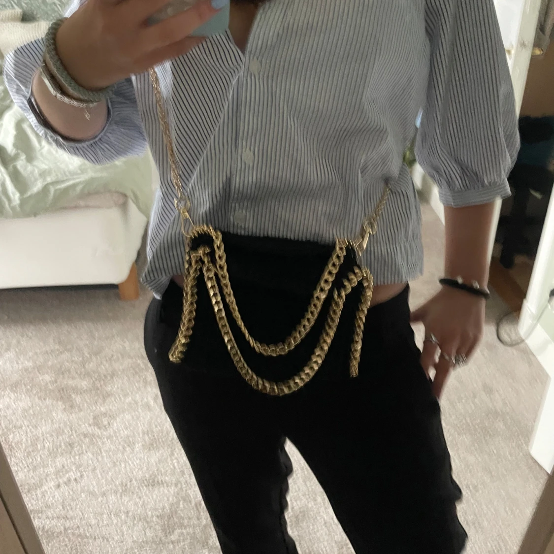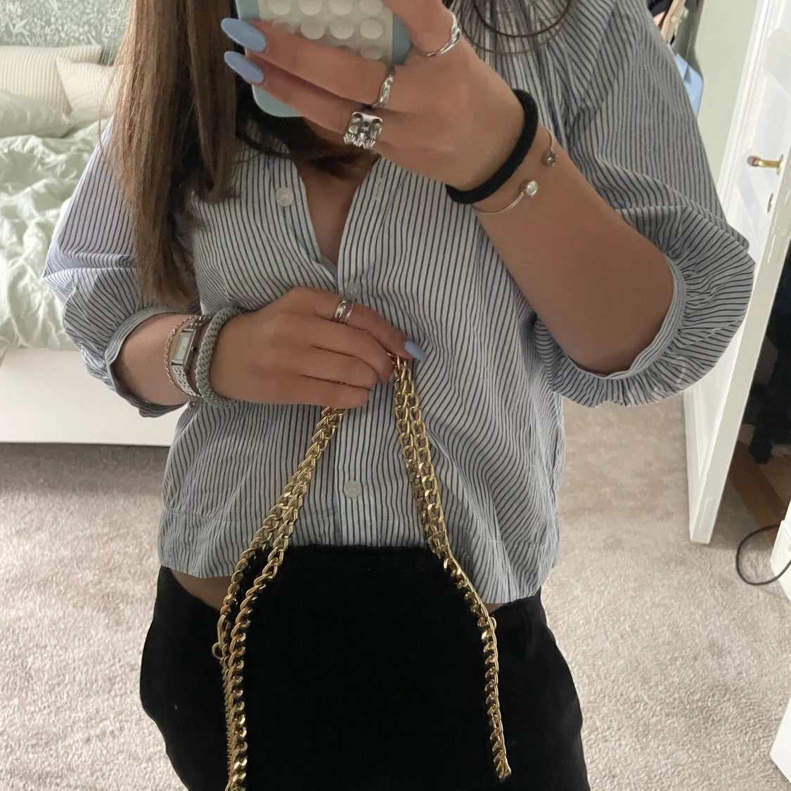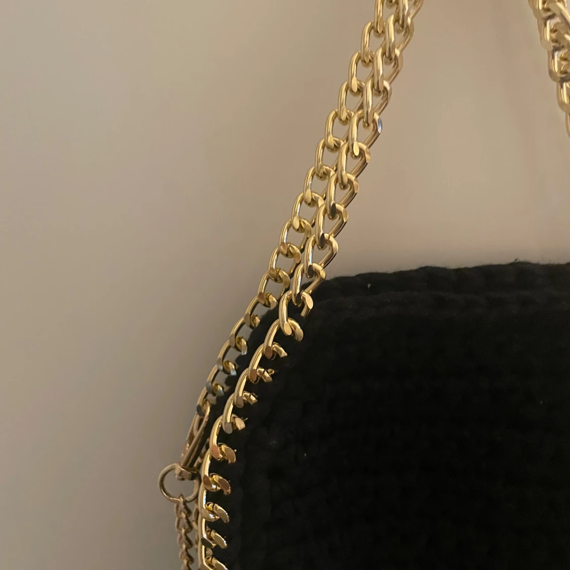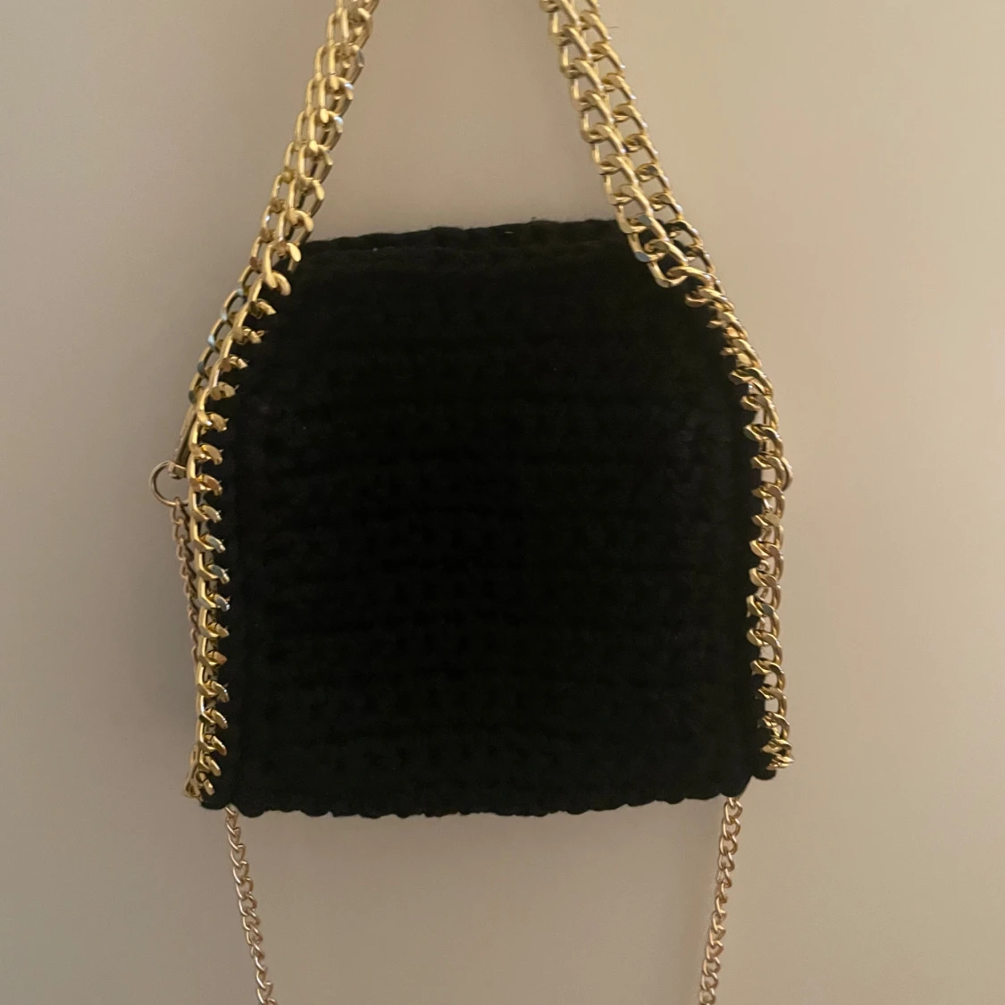 Handgjord, noggrannt virkad väska. Svart med guldkedja. Passar perfekt till alla tillfällen!! 🤍🤍