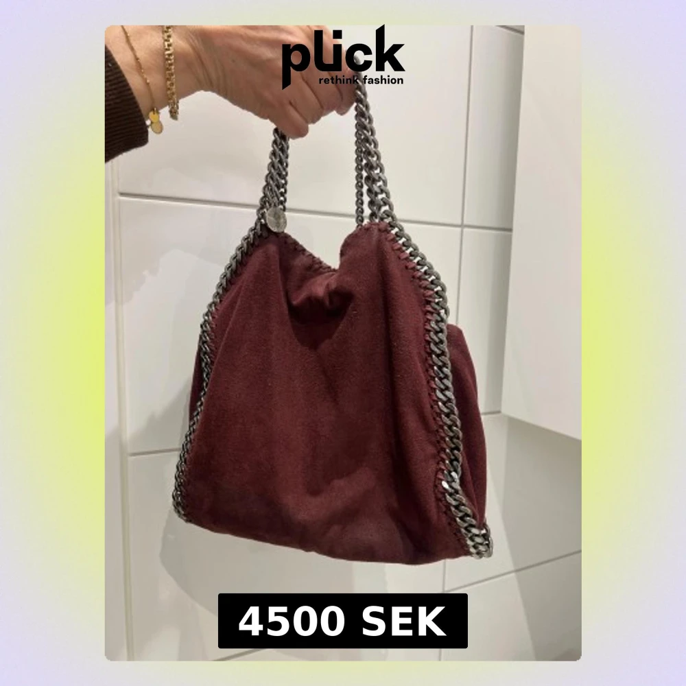 Super fin väska från Stella McCartney. Vinröd med silver detaljer💞 lite rostig på kedjan och lite missfärgningar här o där men i övrigt bra skick! Inget kvitto eller dustbag men finns på vestiare där noggranna äkthets kontroller genomförs för att garantera äkta vara🫶🏼