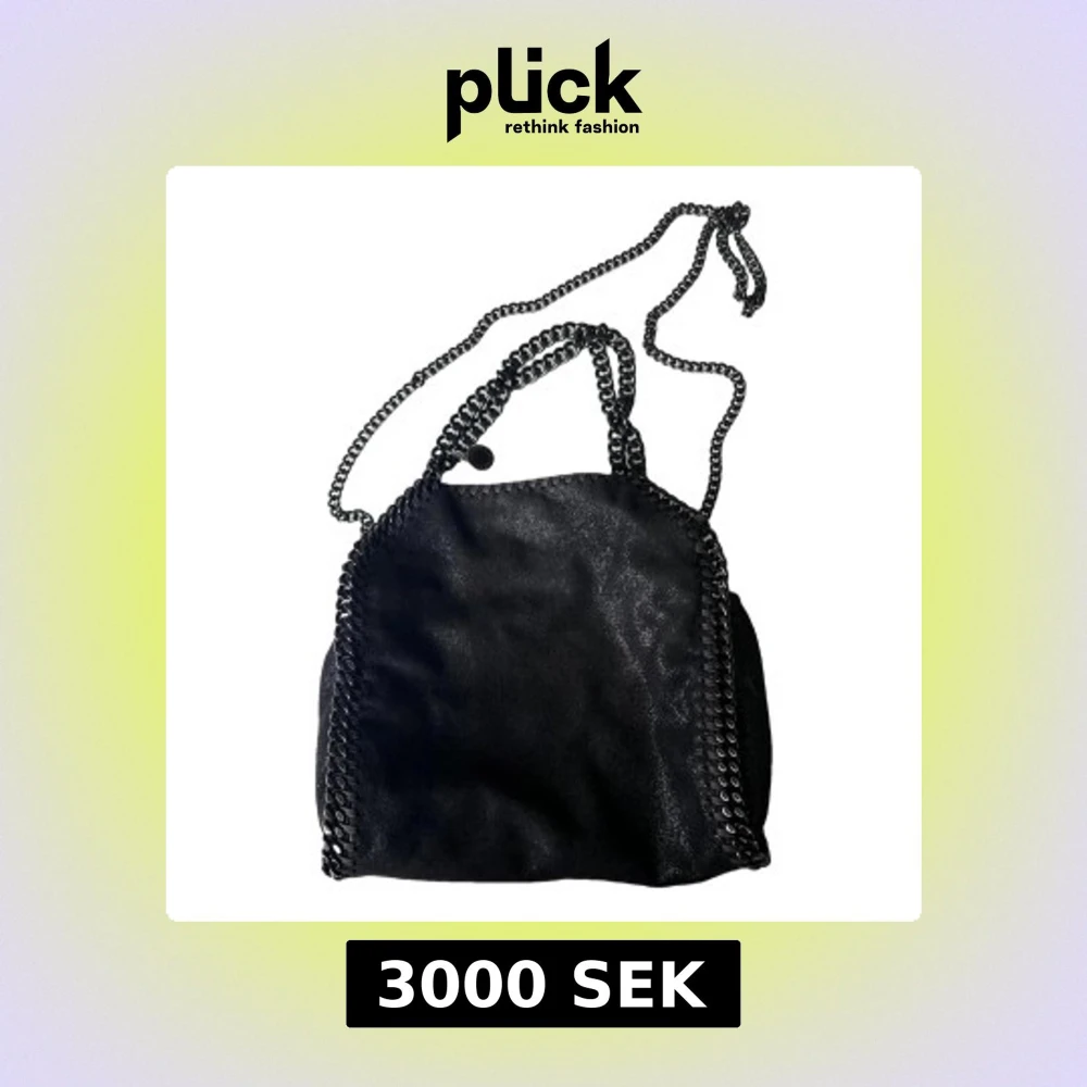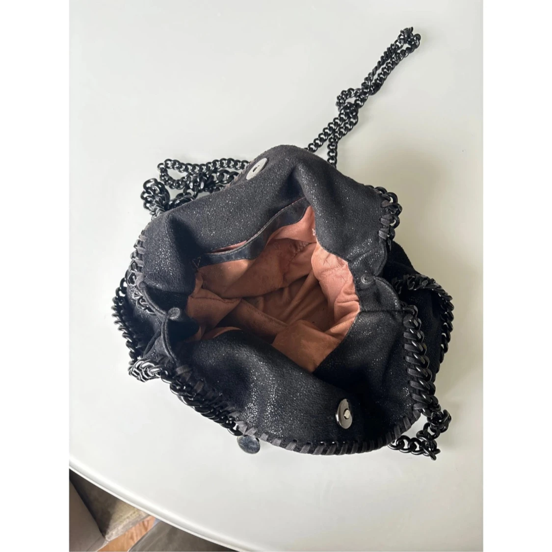 Snygg svart axelväska från Stella McCartney falabella modellen med kedjedetaljer runt kanterna och som axelrem. Väskan har ett mjukt material och magnetknäppning, samt en ljusrosa insida. Perfekt för att lyfta din outfit.