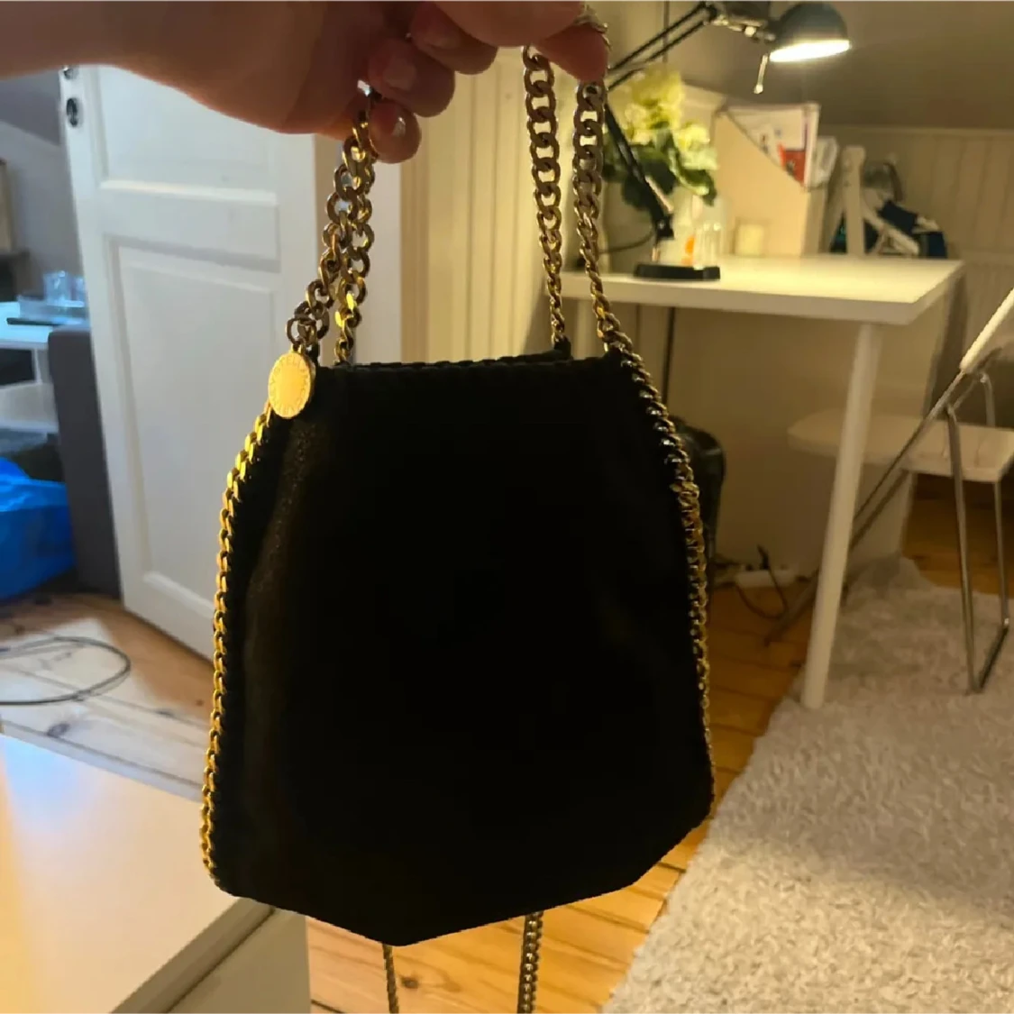 Snygg Stella McCartney väska med guldkedja. Du får plats med plånbok mobil i osv så perfekt storlek. Väskan är i bra skick men har däremot ett litet hål ovanpå lädret därav priset. Ingenting annat märkbart. Sista bilden är lånad från förra säljaren. Hör av er angående frågor💞