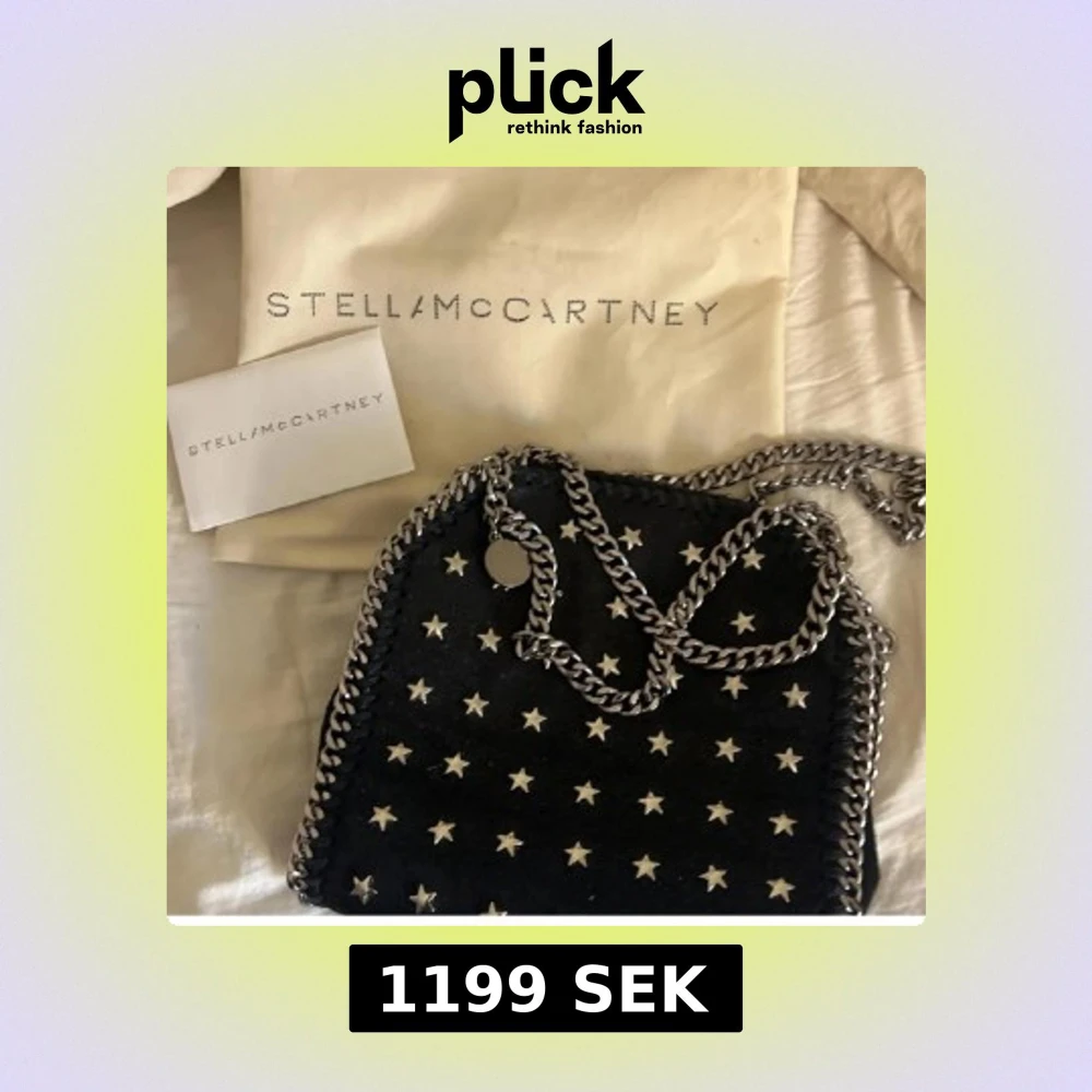 Super snygg stella mc väska som jag haft ett långt tag nu, är inte 100% på om den är äkta men tror det (därav pris), super skick förutom att en stjärna på utsidan saknas. Kort och dustbag följs med. Skicka gärna prisförslag!