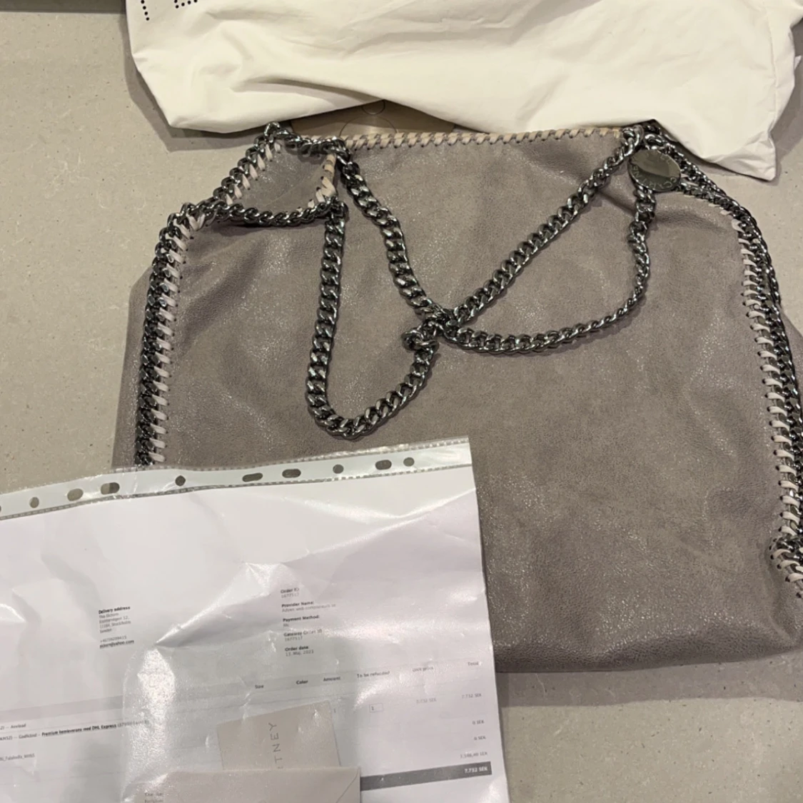 Säljer denna sjukt eftertraktade och snygga Stella Mccartney väska i modellen Falabella köpt på miinto. Den är sparsamt använd och är därmed i väldigt bra skick, endast ett år gammal. Vid köp ingår kvitto, Stella McCartney kort samt dustbag. Nypris på denna ligger på runt 8000-10000 kr men säljer denna för 5500 kr. Kan gå ner i pris vid en snabb affär. Kan mötas upp på Kungsholmen/Stockholm city alternativt frakta spårbart och säkert via Postnord! Bara att höra av sig vid eventuella frågor!