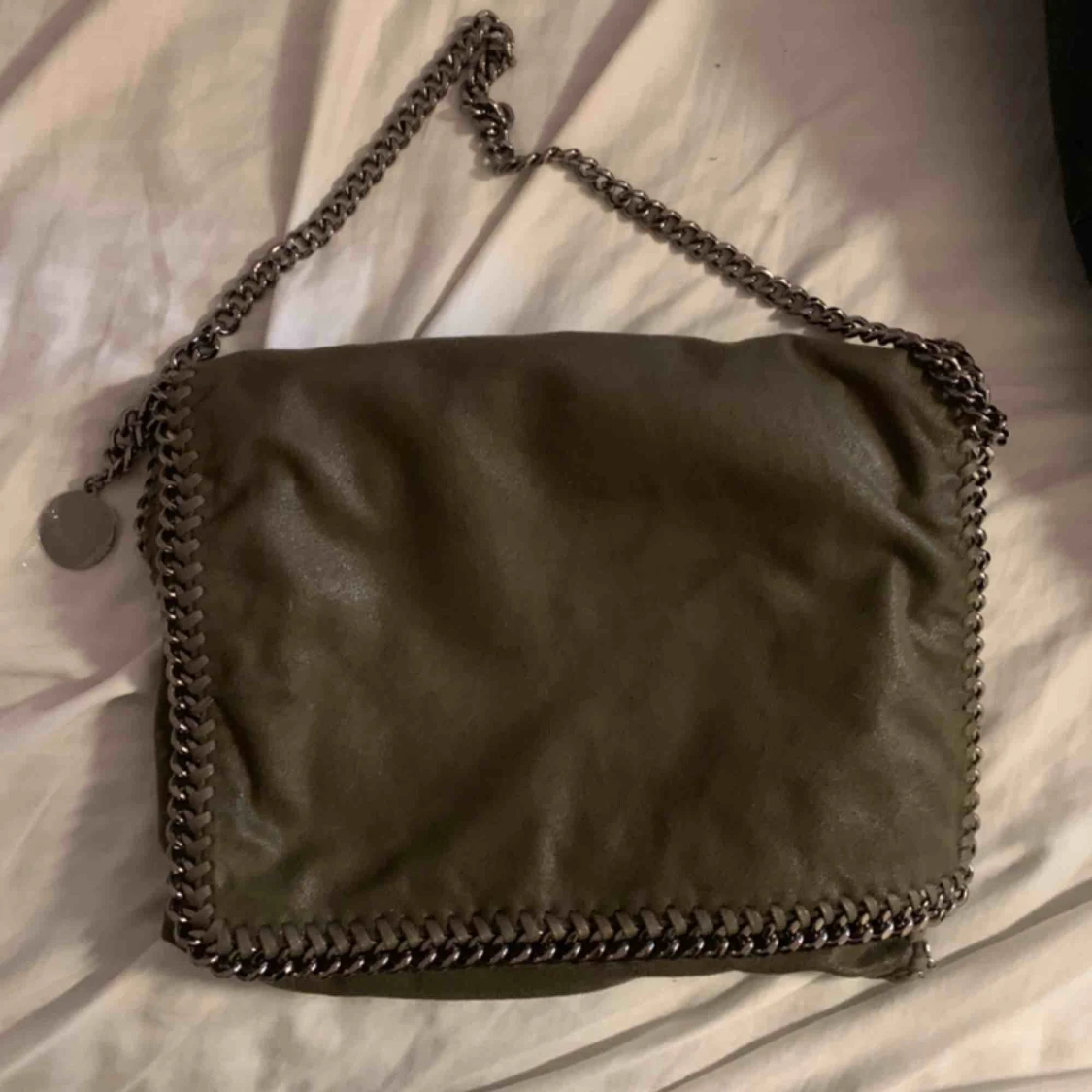 Oäkta Stella McCartney väska i olivgrön. Är i perfekt skick och har aldrig använts men är alltså inte äkta. Om man inte är ett proffs så skulle man inte tro att det är en fejk😁