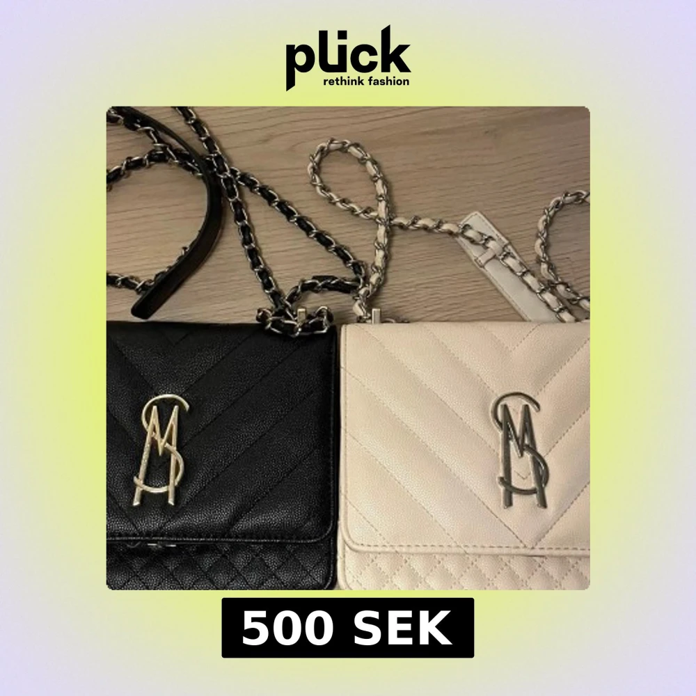 Säljer två snygga axelväskor från Steve Madden, en i svart och en i beige. Båda har quiltad design, kedjerem med läderdetaljer och metall-logga framtill. Perfekt storlek för mobilen och det viktigaste. Stilren look med lyxig känsla.