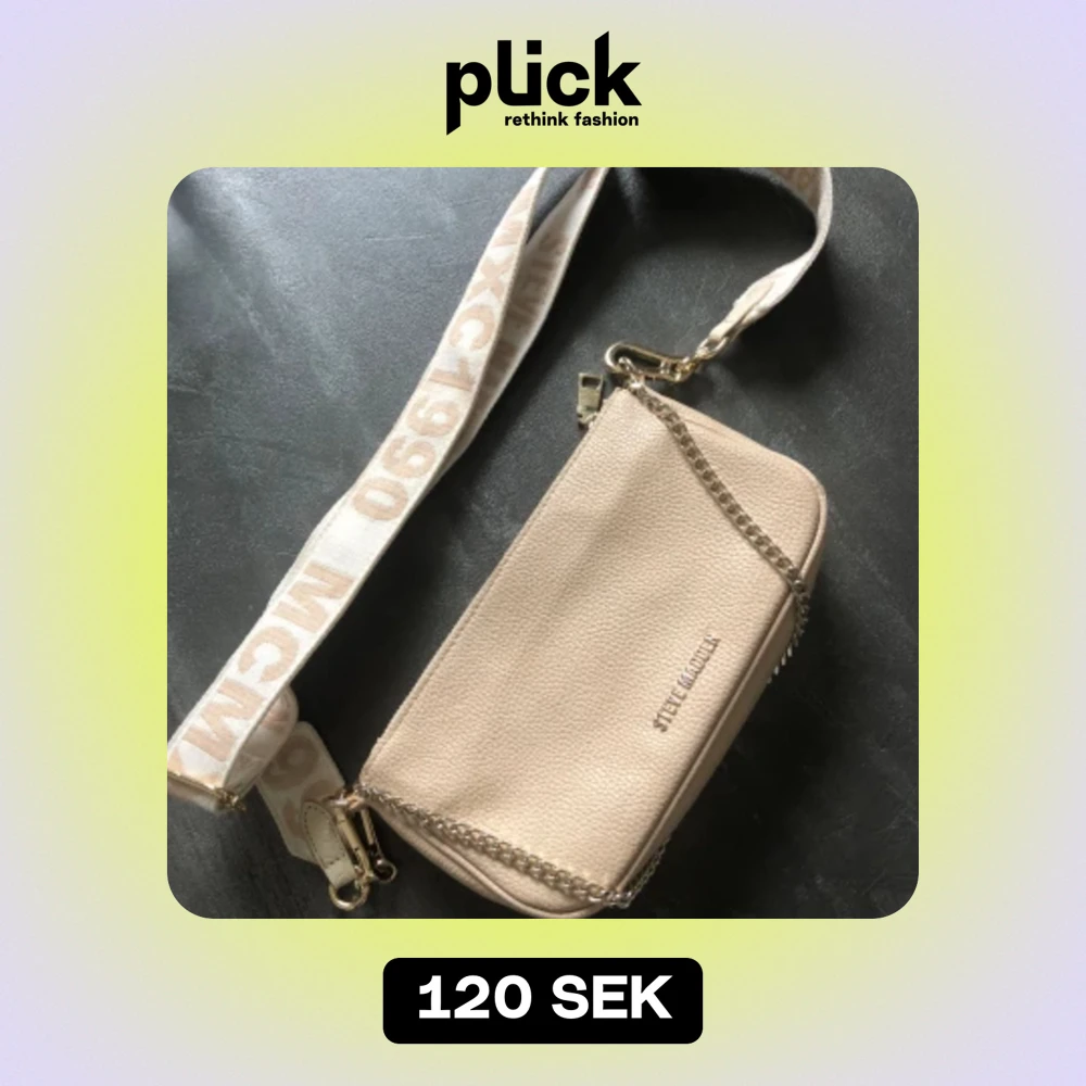 Beige Steve Madden väska med bred axelband och kedja. Lite nött vid ena kanten.
