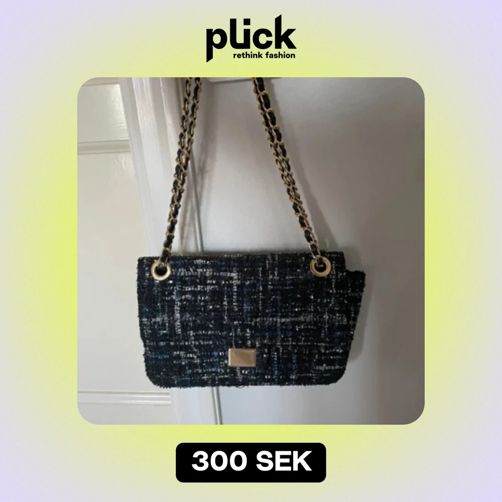 Blå/svart/glittrig axelremsväska med guldkedja. Aldrig använd💛 Passar perfekt till utgång