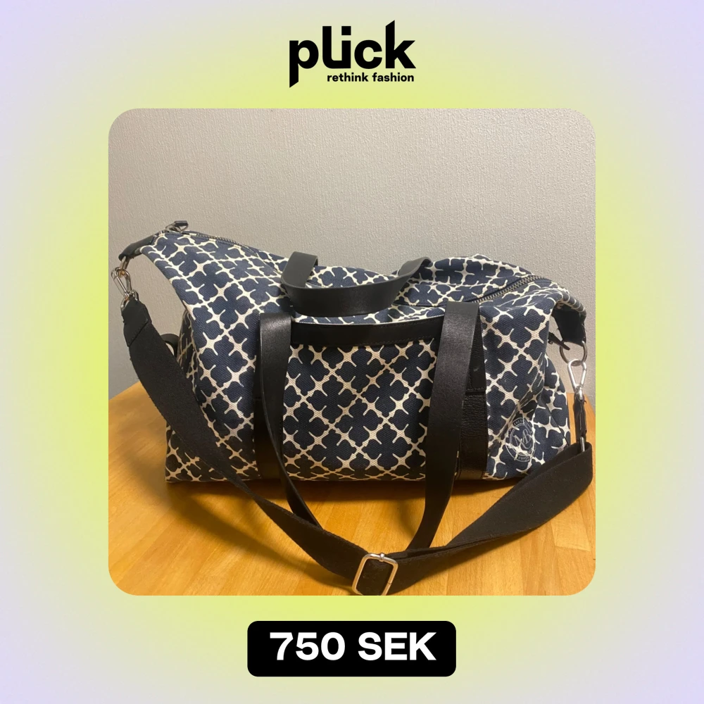 Säljer en snygg väska från By Malene Birger med ett coolt mönster i blått och vitt. Väskan har svarta handtag och axelrem, men det finns lite slitage på handtagen. Insidan är vit med några fläckar. Går att tvätta bort men det har jag tyvärr inte tid till därav priset 💞 Perfekt för träning, skola eller som weekendbag! Priset går att diskutera, pm mig gärna 💞