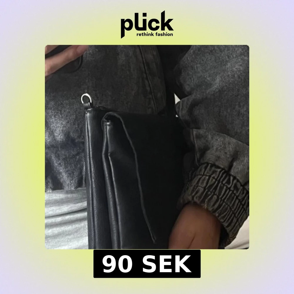 Stilren svart axelväska. Väskan har ett avtagbart axelband och enkel, rektangulär form. Perfekt för dig som gillar minimalistisk design och vill ha en väska som sticker ut med sina olika material.