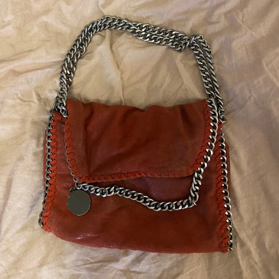 Super fin röd väska! Knäppet på väskan är väldigt trasig ( se bild 3) där av priset men går fortrande att stänga. Går även att ha som långt band