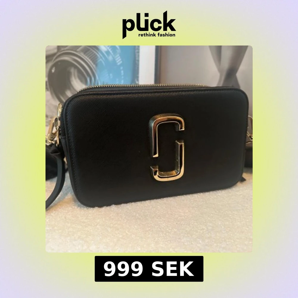 Snygg svart axelväska från Marc Jacobs med guldfärgad logga framtill. Väskan har två dragkedjefack, justerbar axelrem och ett praktiskt ytterfack på baksidan. Perfekt för att bära det viktigaste med stil. Knappt använd