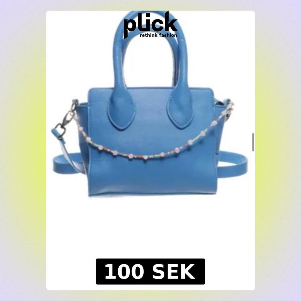 Snygg blå axelväska i skinn med två handtag och avtagbar axelrem. Väskan har en söt pärlrem framtill som ger en lekfull touch. Perfekt storlek för det viktigaste och enkel att matcha med olika outfits.