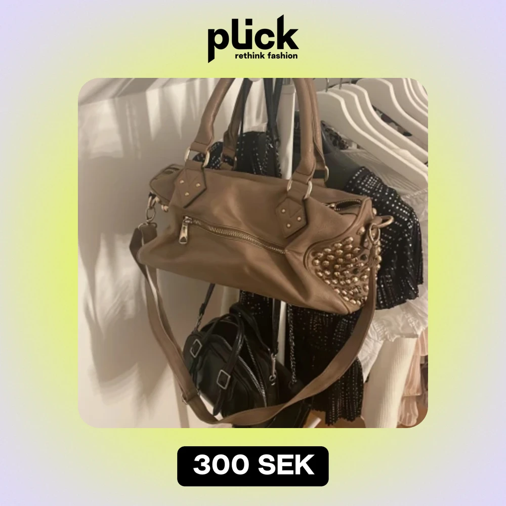 Unik väska köpt här på plick, men som tyvärr inte riktigt kändes som min stil. Kom gärna med prisförslag🥰jättefin beige/brun färg och rymlig väska❣️